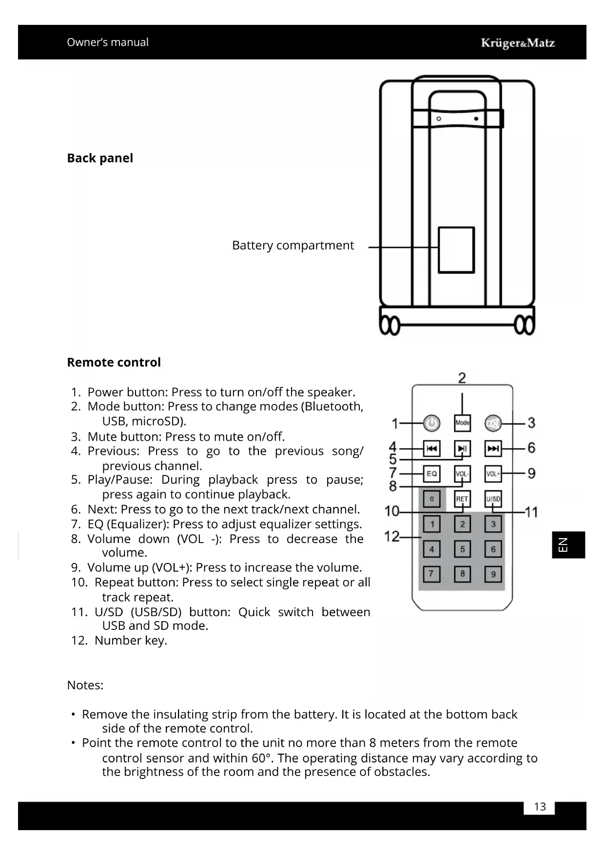 Download the instructions for your Speaker in PDF format for free! Find your manual KM0531 - Krüger&Matz and take your electronic device back in hand. On this page are published all the documents necessary for the use of your device. KM0531 by Krüger&Matz.