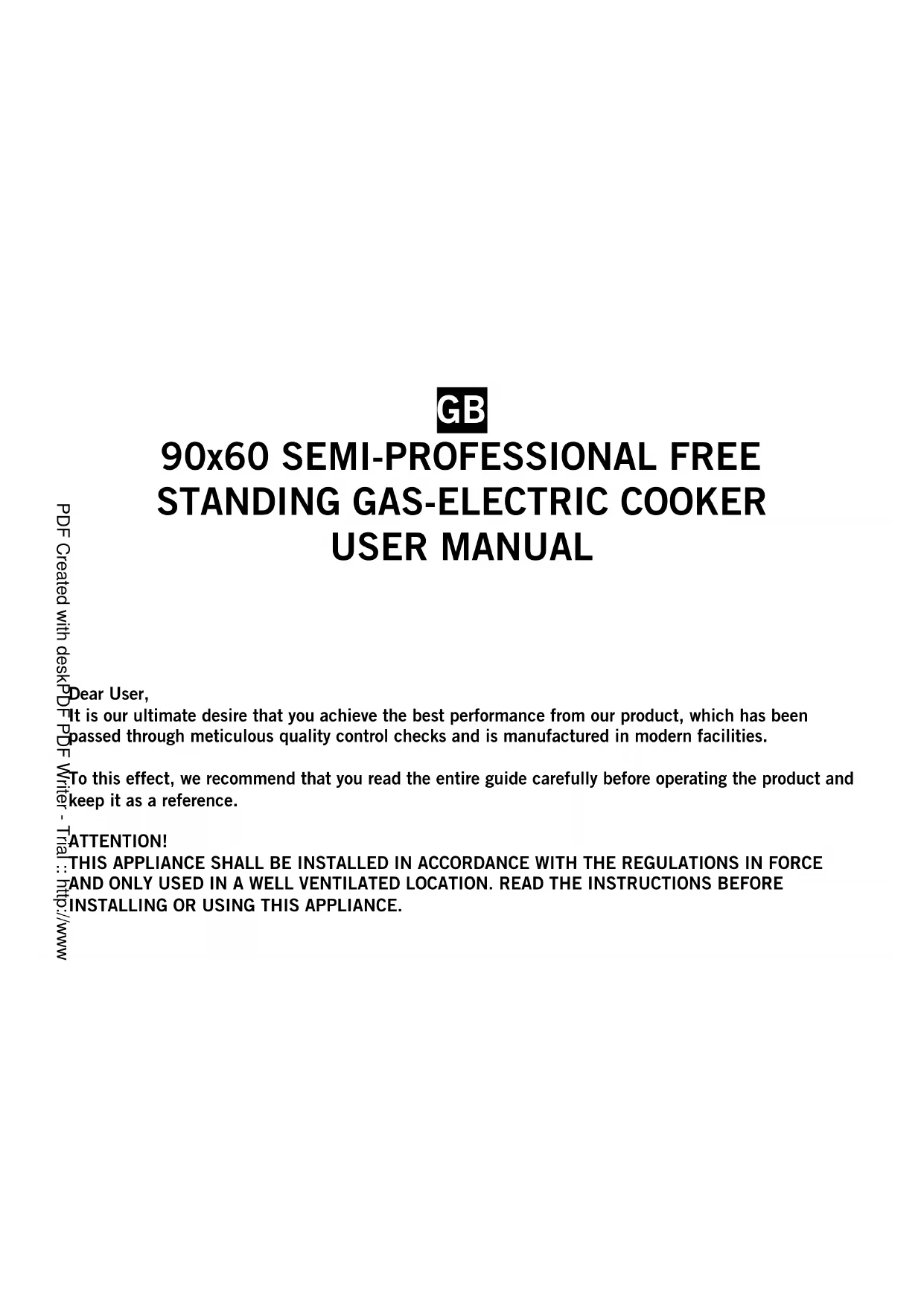 Dear User, It is our ultimate desire that you achieve the best performance from our product, which has been passed through meticulous quality control checks and is manufactured in modern facilities. To this effect, we recommend that you read the entire guide carefully before operating the product and keep it as a reference. ATTENTION! THIS APPLIANCE SHALL BE INSTALLED IN ACCORDANCE WITH THE REGULATIONS IN FORCE AND ONLY USED IN A WELL VENTILATED LOCATION. READ THE INSTRUCTIONS BEFORE INSTALLING OR USING THIS APPLIANCE. PDF Created with deskPDF PDF Writer - Trial :: http://www.docudesk.com1 - TABLE OF CONTENTS