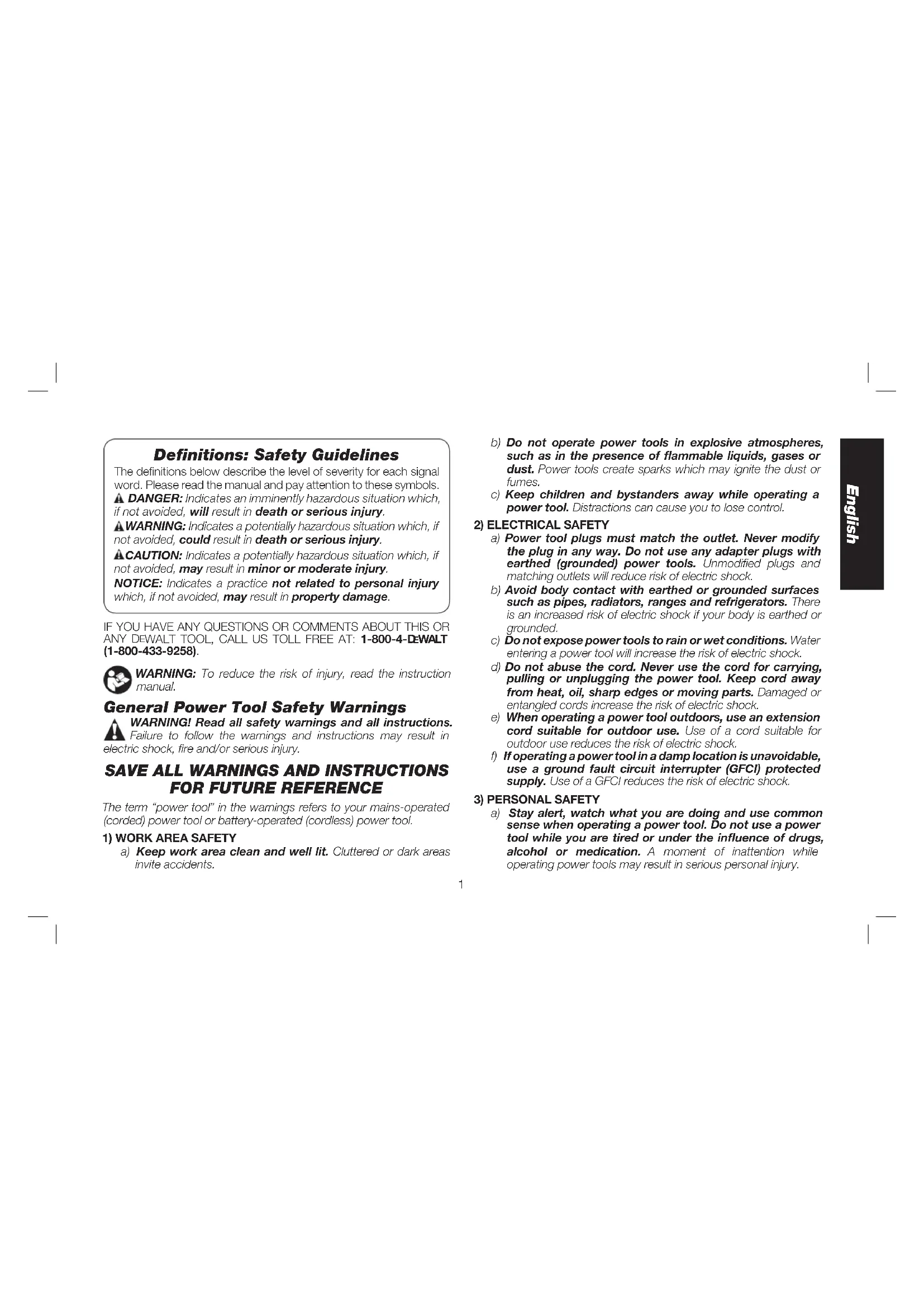 manual. General Power Tool Safety Warnings WARNING! Read all safety warnings and all instructions. Failure to follow the warnings and instructions may result in electric shock, fire and/or serious injury.