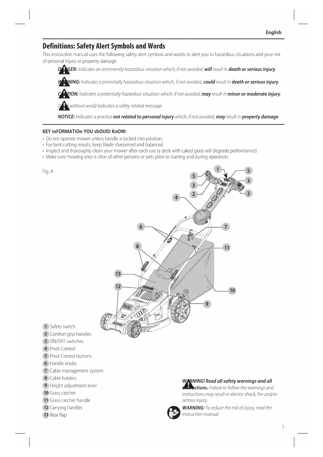 - The use of any accessory or attachment not recommended for use with this mower could be hazardous. Only use accessories approved by BLACK+DECKER.