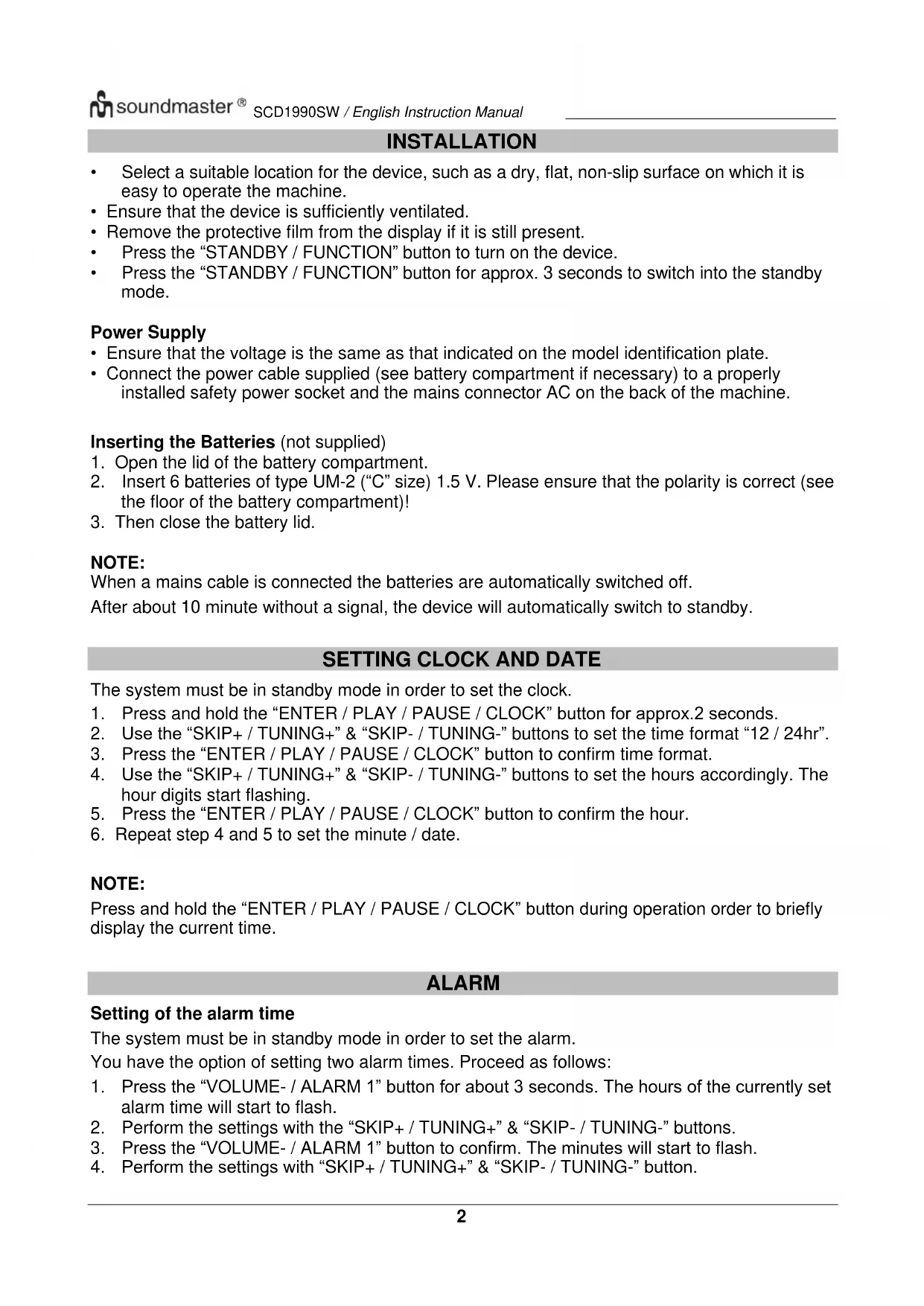USER MANUAL SCD1990 Soundmaster