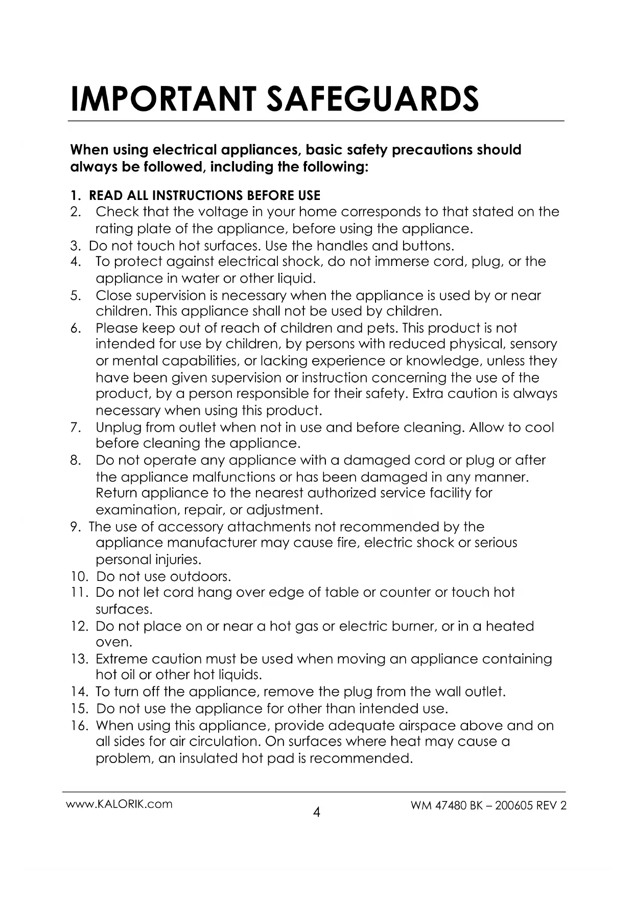 USER MANUAL WM 47480 BK KALORIK