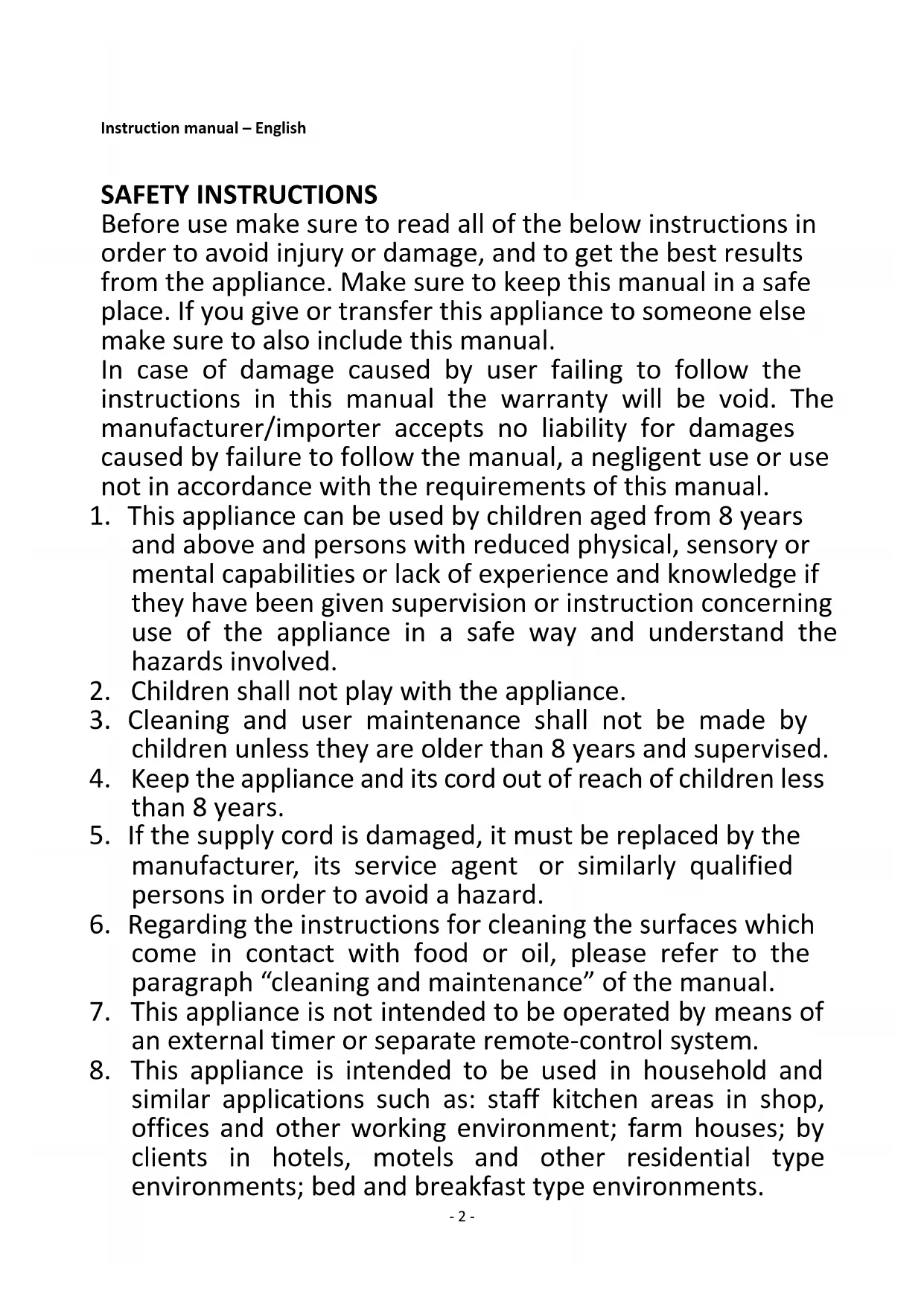 2. Children shall not play with the appliance.