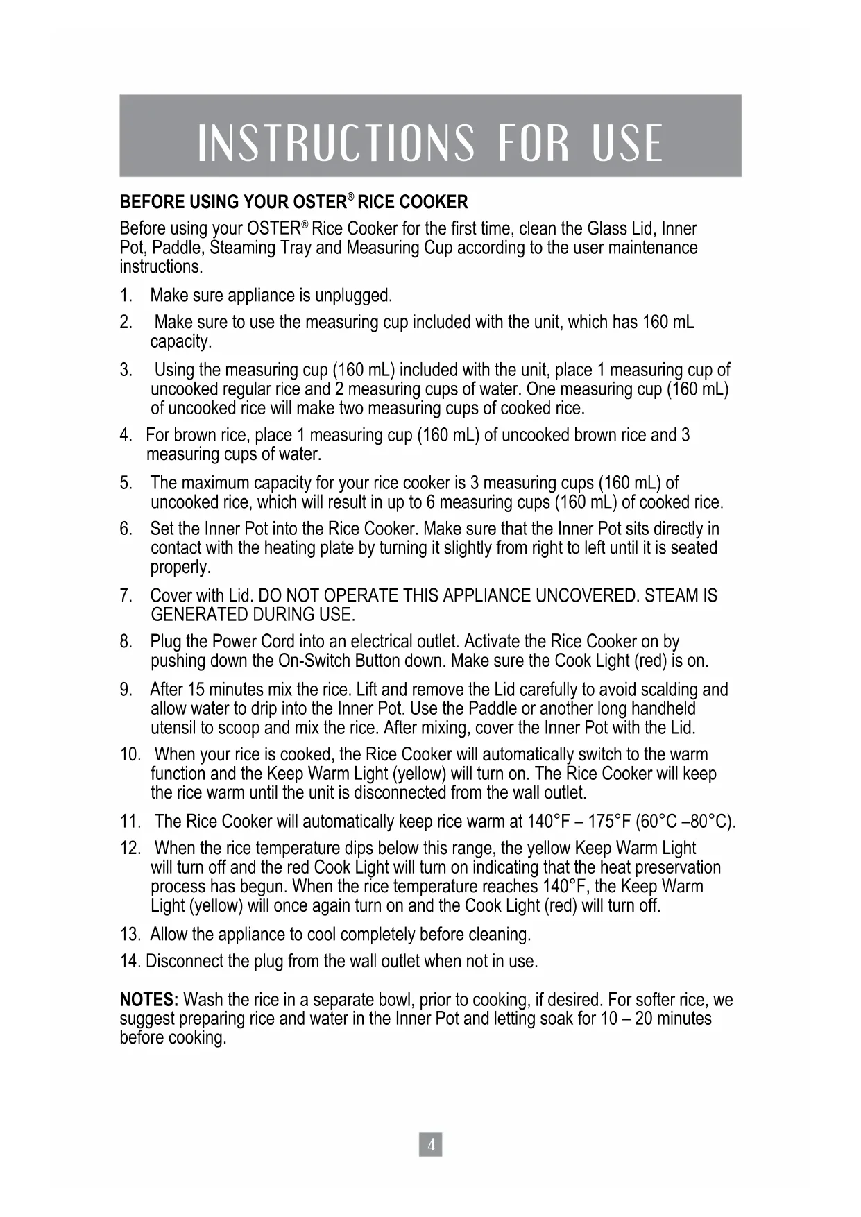 Download the instructions for your Rice cooker in PDF format for free! Find your manual CKSTRC4723 - OSTER and take your electronic device back in hand. On this page are published all the documents necessary for the use of your device. CKSTRC4723 by OSTER.