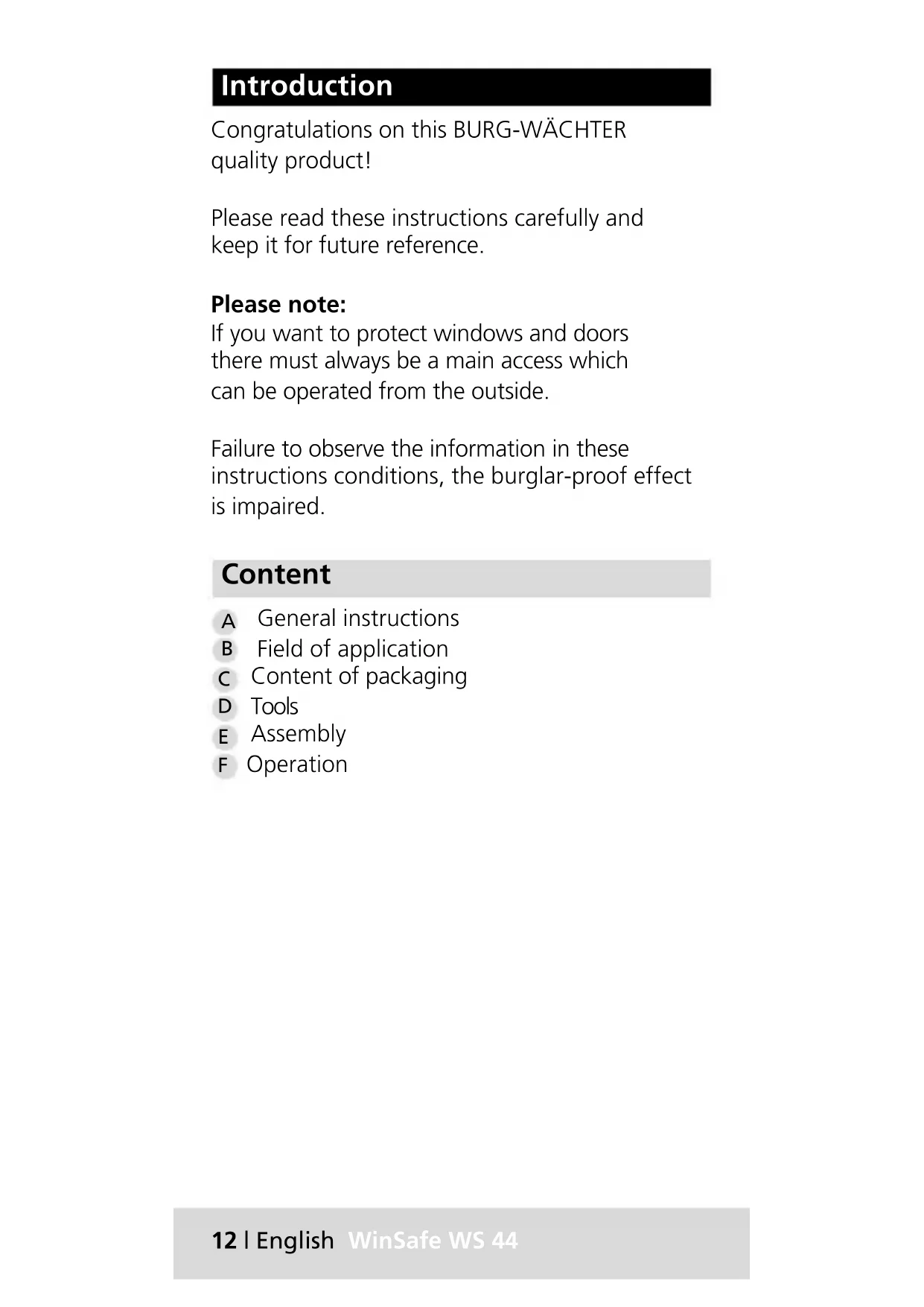 USER MANUAL WinSafe WS 44 Burg Wächter