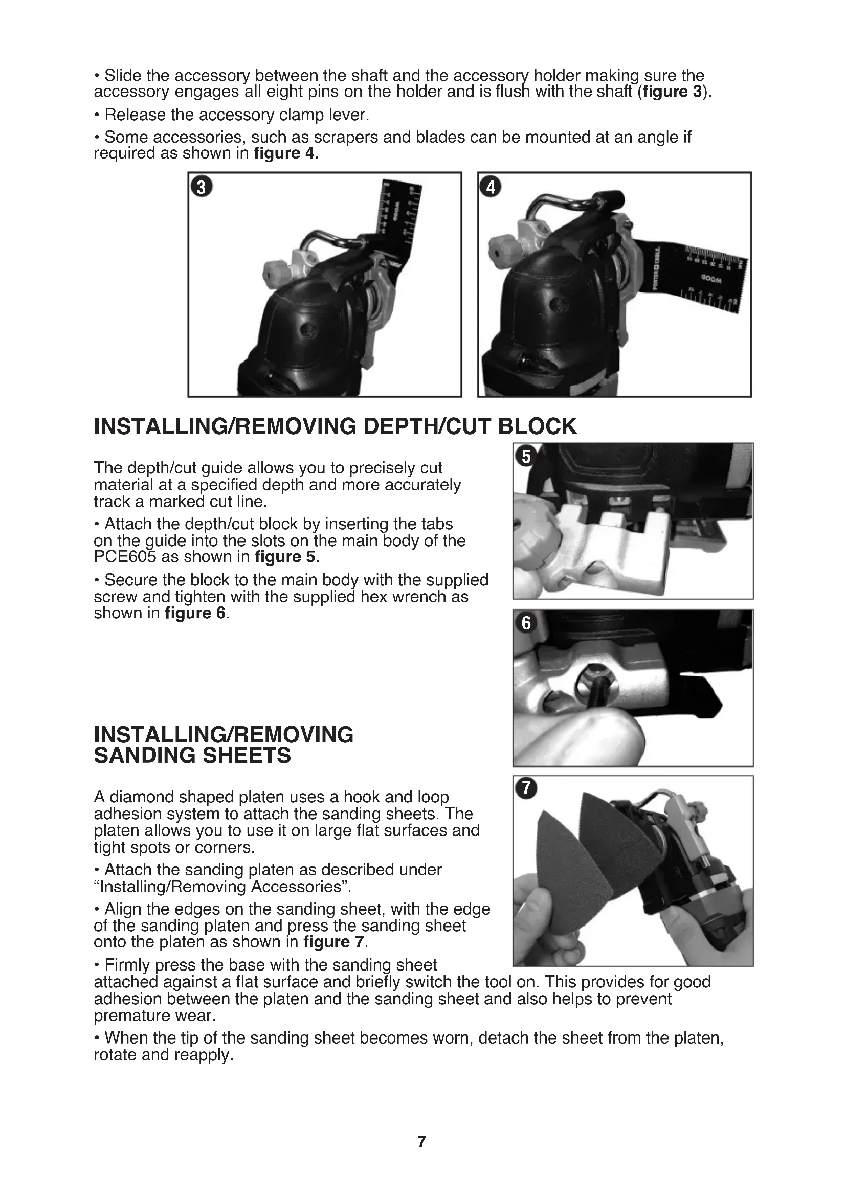 - Some accessories, such as scrapers and blades can be mounted at an angle if required as shown in figure 4. INSTALLING/REMOVING DEPTh/CUT BLOCk The depth/cut guide allows you to precisely cut material at a specified depth and more accurately track a marked cut line.