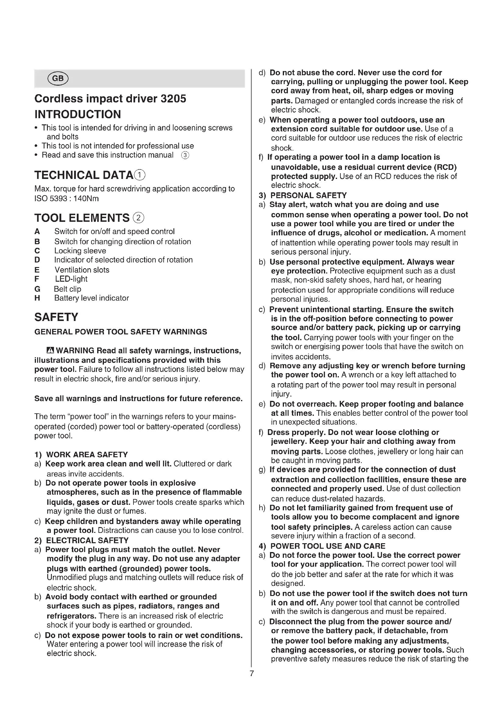 Cordless impact driver 3205 INTRODUCTION