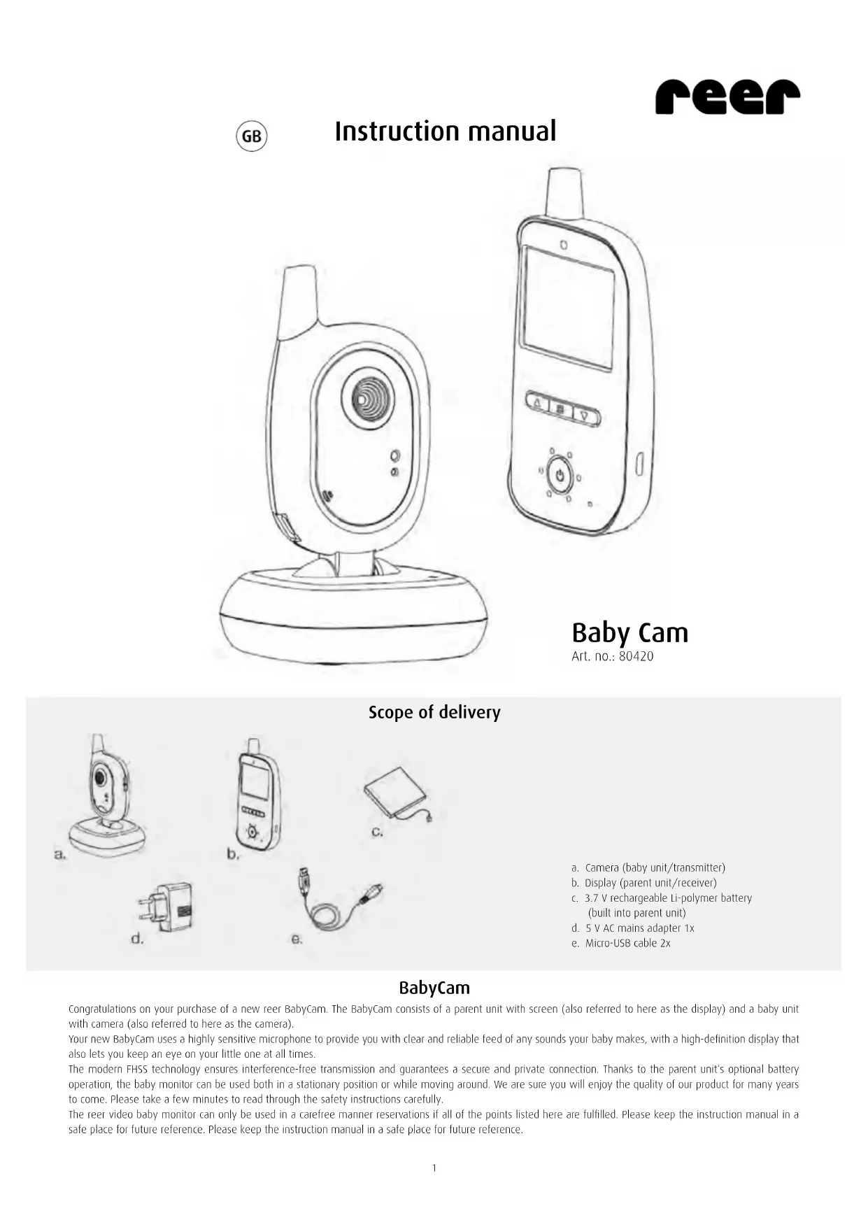 BabyCam 80420 - Baby monitors Reer - Free user manual and instructions