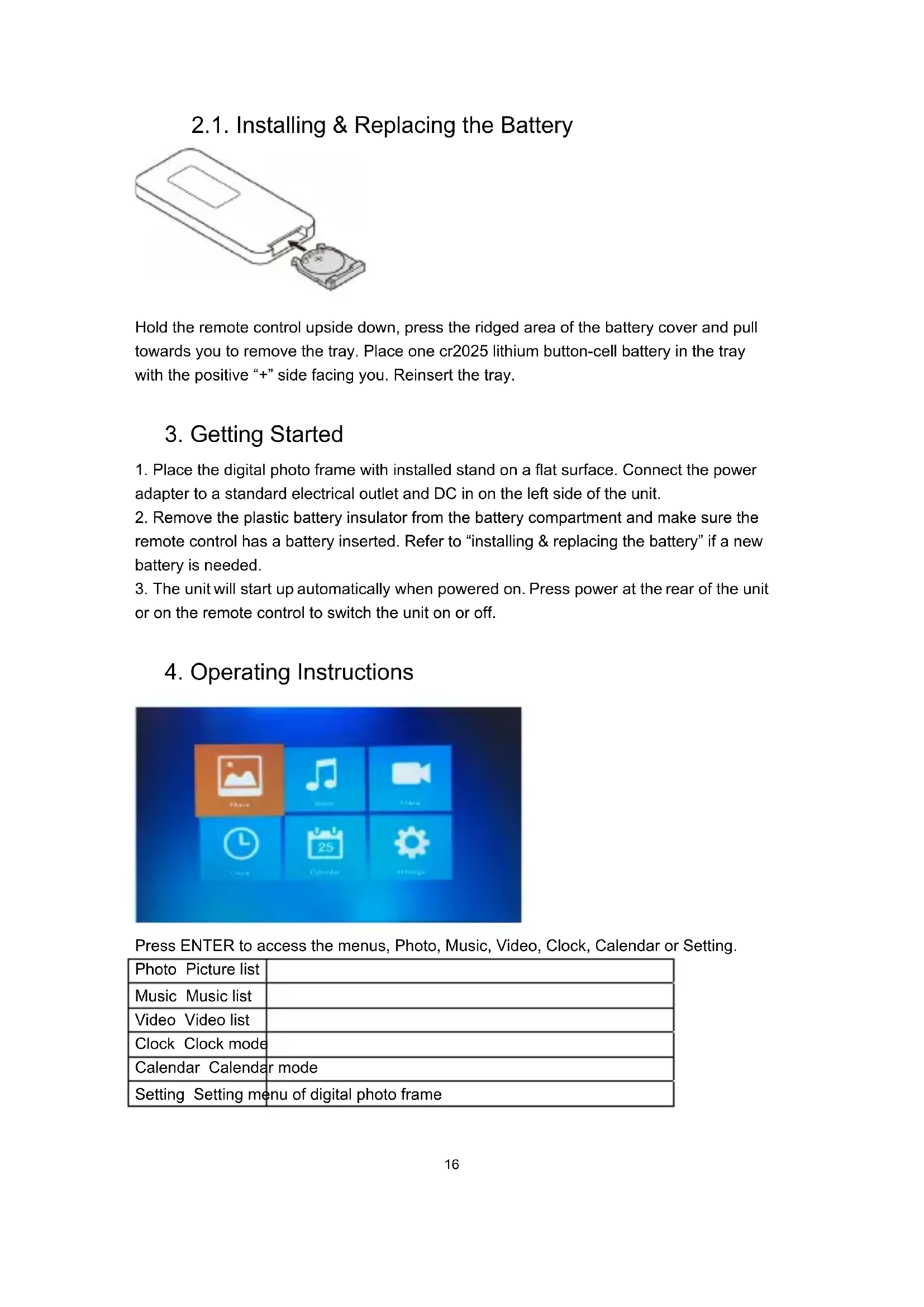 - Do not disassemble the digital photo frame. Disassembling the digital photo frame will void your warranty. Cleaning the LCD screen