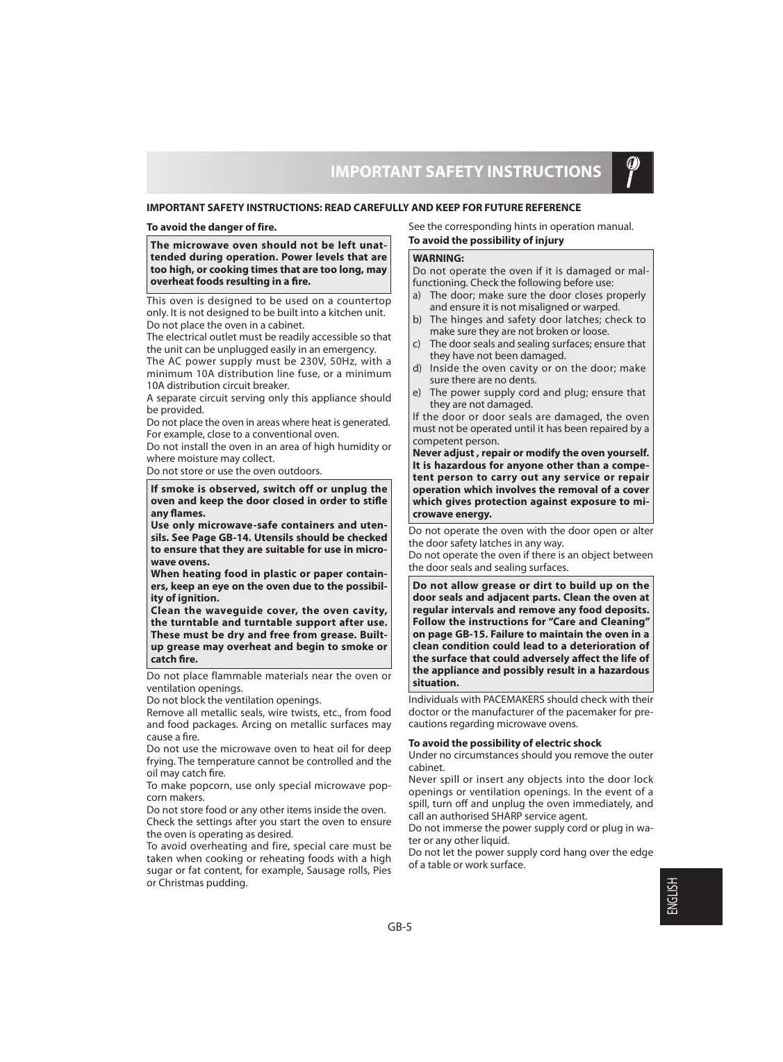IMPORTANT SAFETY INSTRUCTIONS 5-7