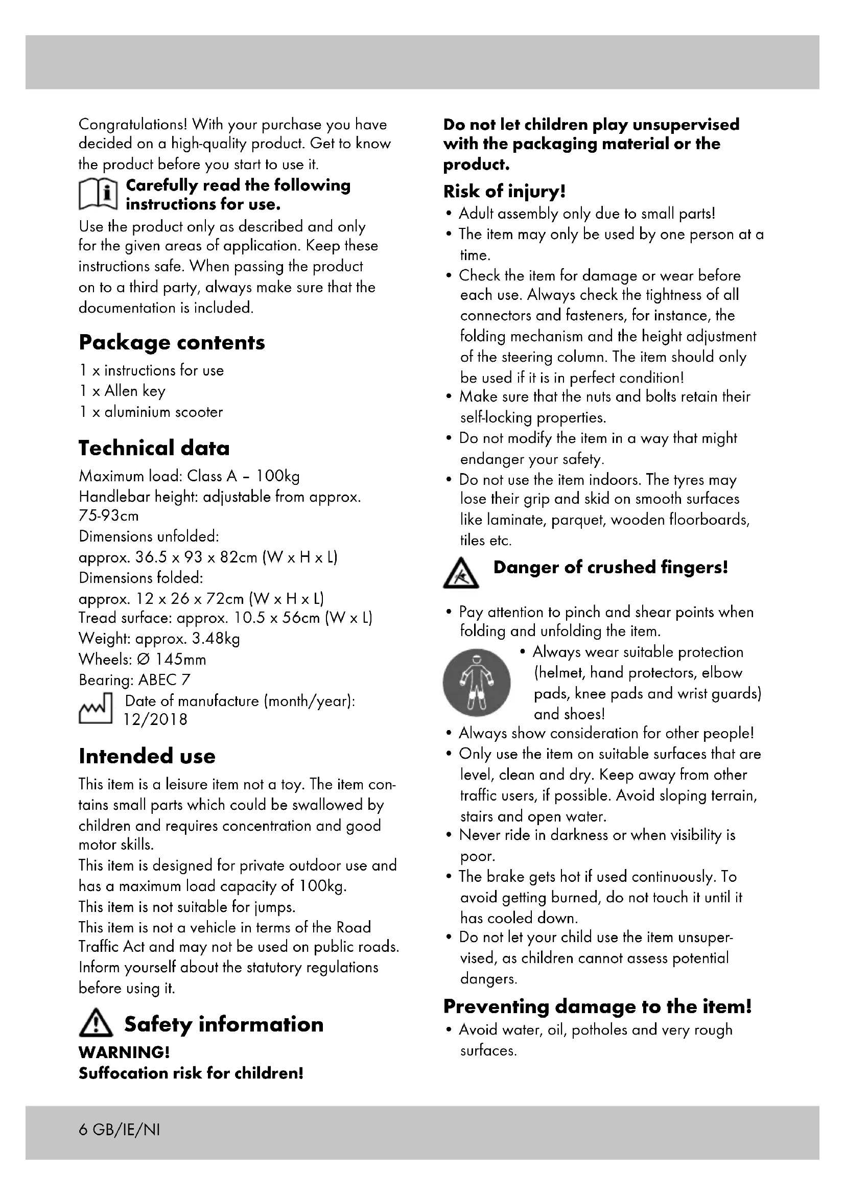 IAN 307525 - Electric scooter CRIVIT - Free user manual and instructions
