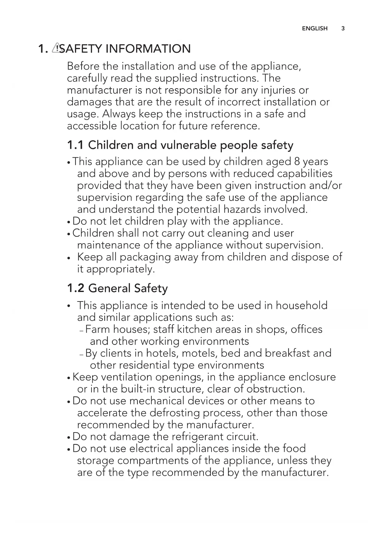 - Do not use electrical appliances inside the food storage compartments of the appliance, unless they are of the type recommended by the manufacturer. ENGLISH 3• Do not use water spray and steam to clean the appliance.