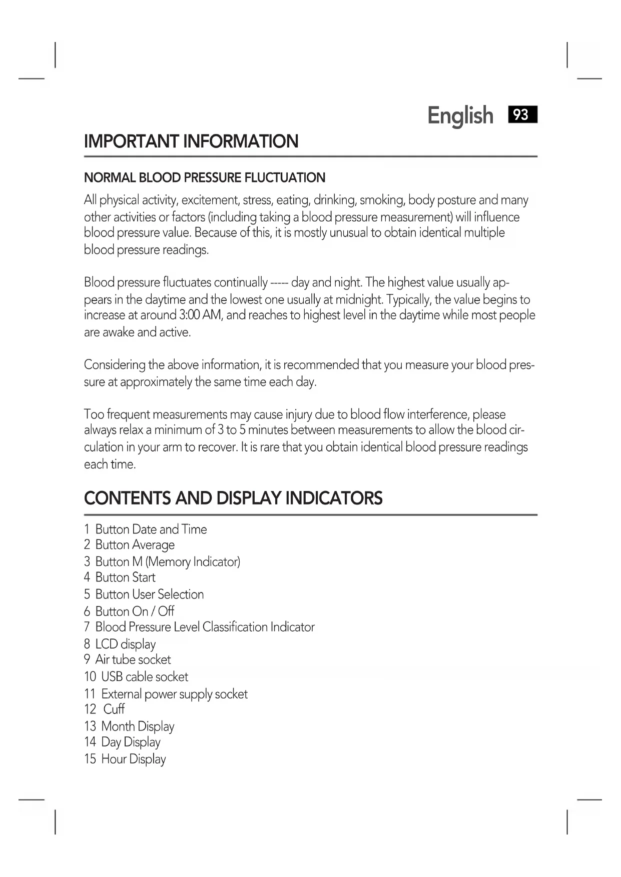 Too frequent measurements may cause injury due to blood flow interference, please always relax a minimum of 3 to 5 minutes between measurements to allow the blood circulation in your arm to recover. It is rare that you obtain identical blood pressure readings each time.
