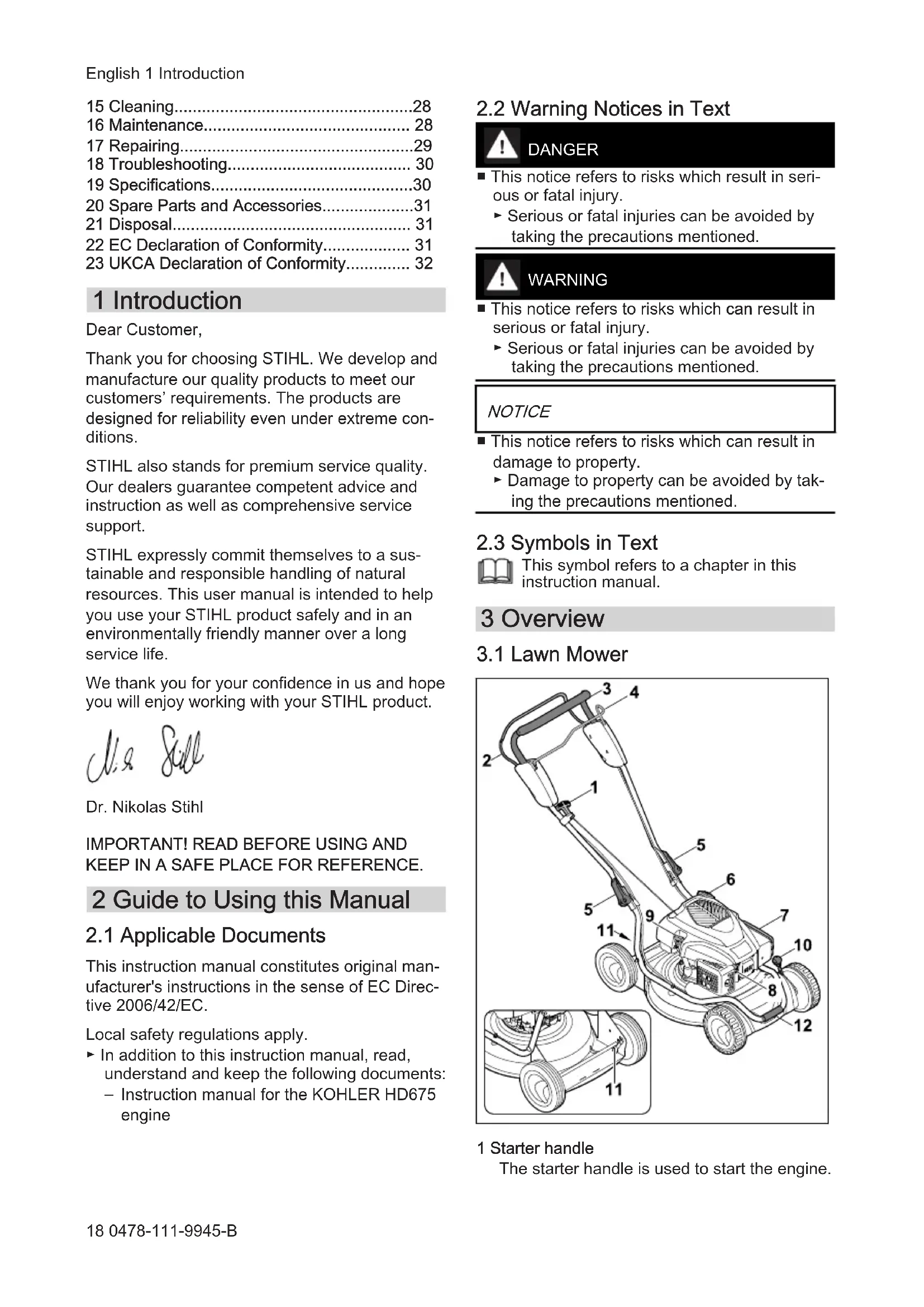 STIHL expressly commit themselves to a sustainable and responsible handling of natural resources. This user manual is intended to help you use your STIHL product safely and in an environmentally friendly manner over a long service life.