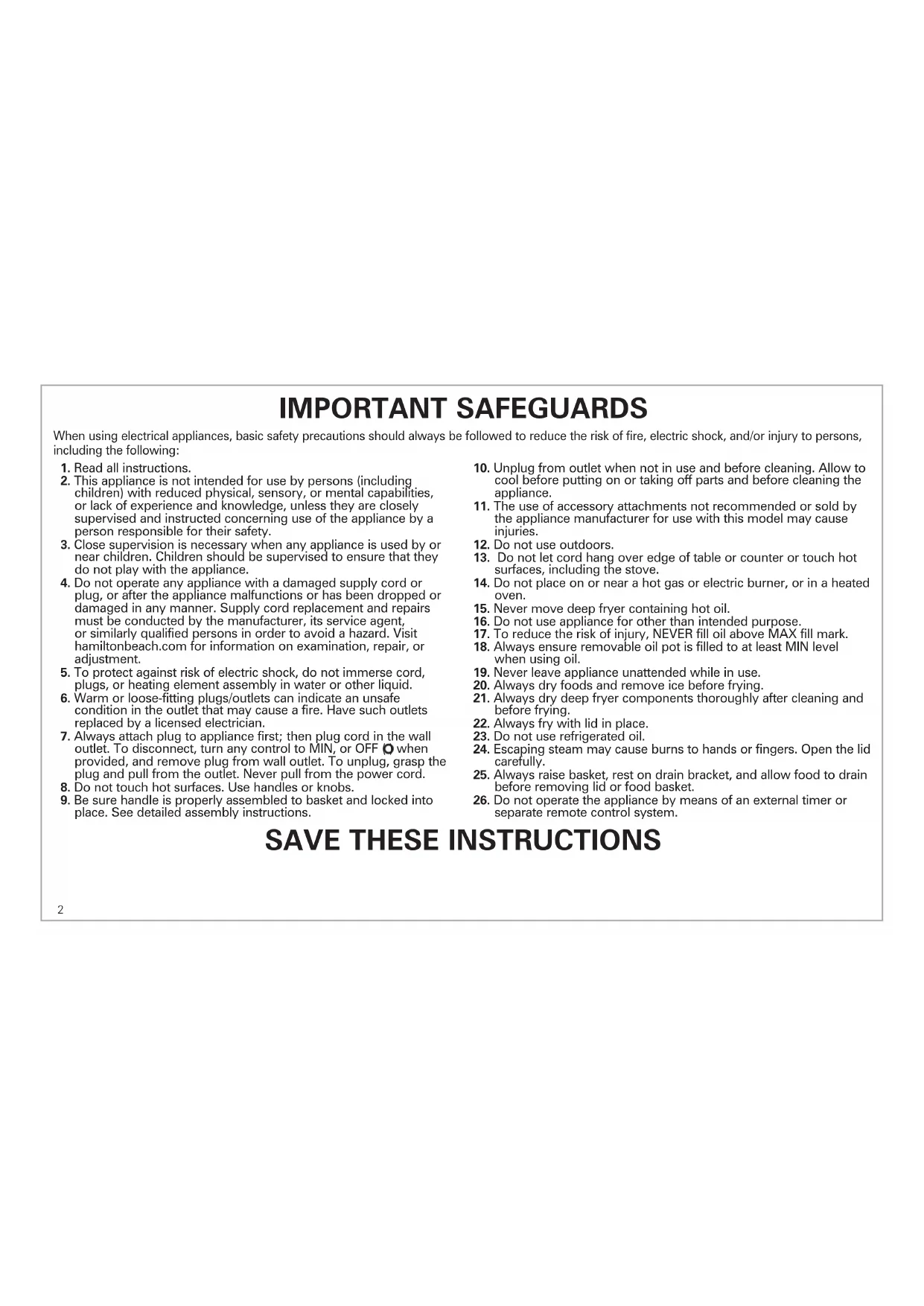 35335 - Deep fryer HAMILTON BEACH - Free user manual and instructions