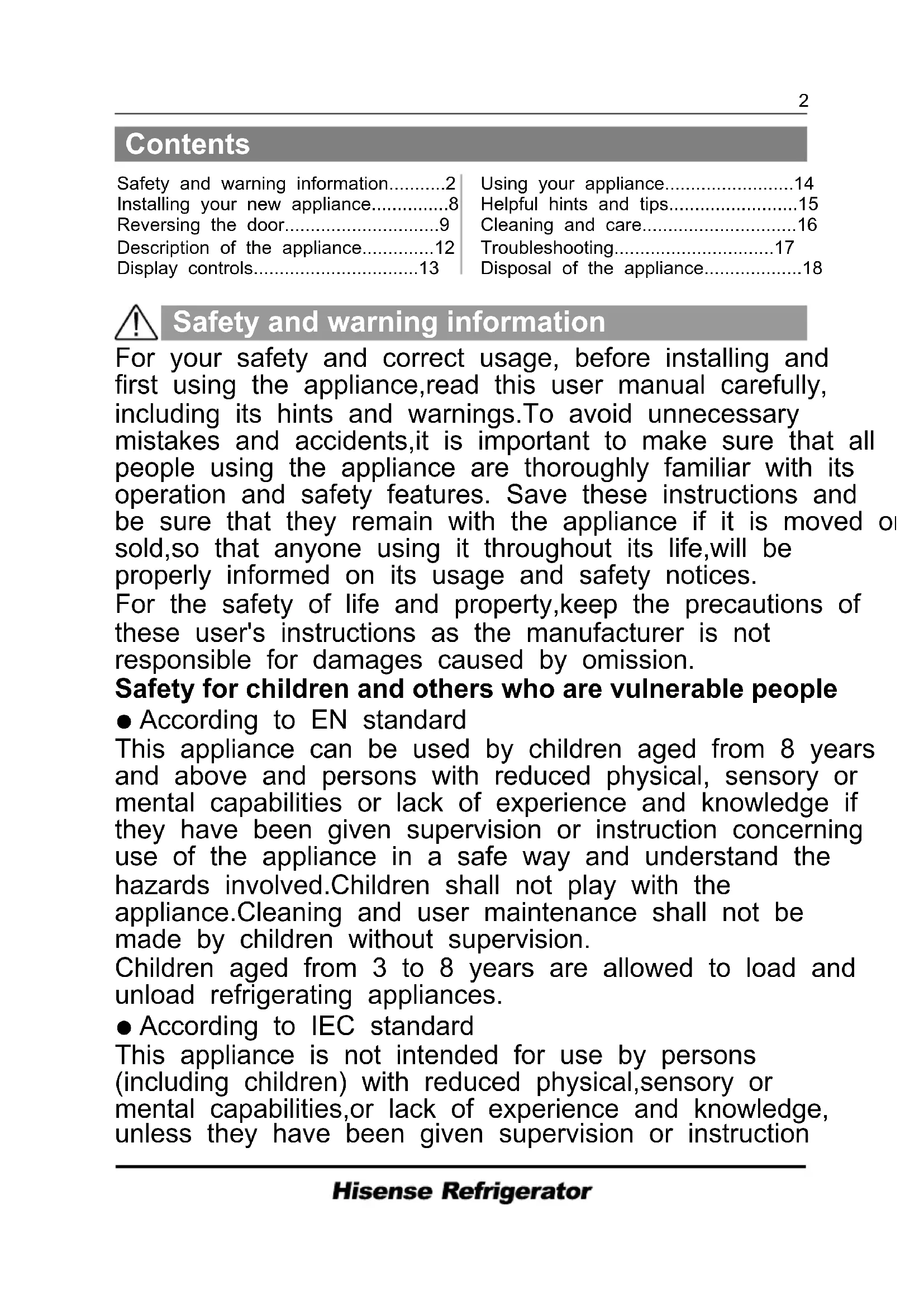 Temperature setting is set colder than necessary Large quantity of warm food has recently been stored switched off for a long time. within the appliance. .The temperature outside the appliance is too high .Doors are kept open too long or too often After your installing the appliance or it has been18 Disposal of the appliance It is prohibited to dispose of this appliance as household waste. Packaging materials Packaging materials with the recycle symbol are recyclable. Dispose of the packaging into a suitable waste collection container to recycle it. Before disposal of the appliance