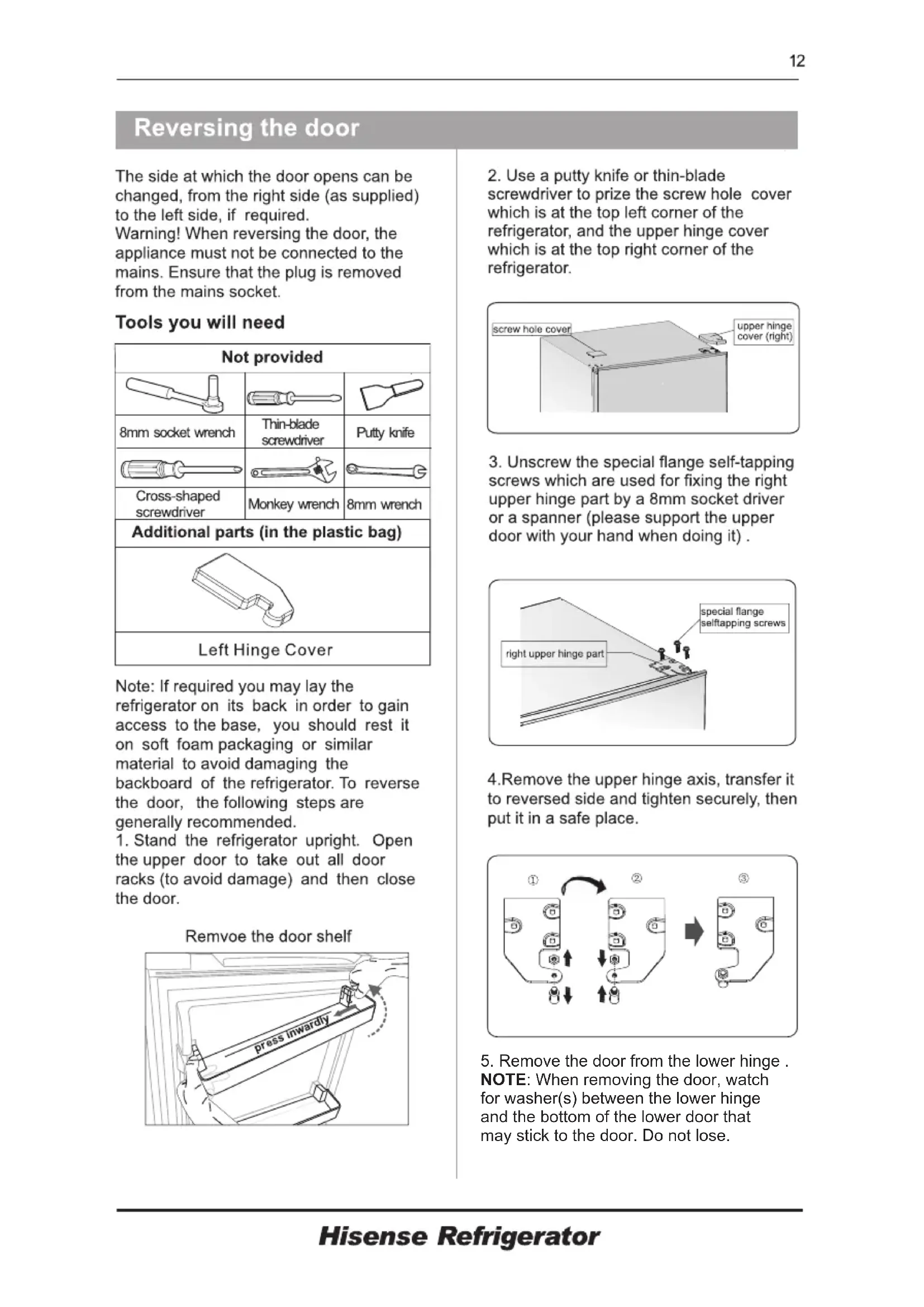 Download the instructions for your Fridge in PDF format for free! Find your manual RL313D4AW1 - HISENSE and take your electronic device back in hand. On this page are published all the documents necessary for the use of your device. RL313D4AW1 by HISENSE.