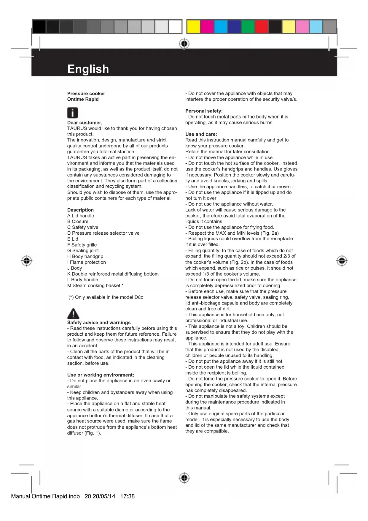 Download the instructions for your Saucepan in PDF format for free! Find your manual Ontime Rapid - TAURUS and take your electronic device back in hand. On this page are published all the documents necessary for the use of your device. Ontime Rapid by TAURUS.