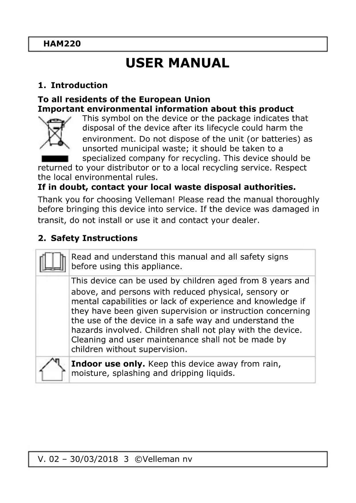 V. 02 – 30/03/2018 6 ©Velleman nv