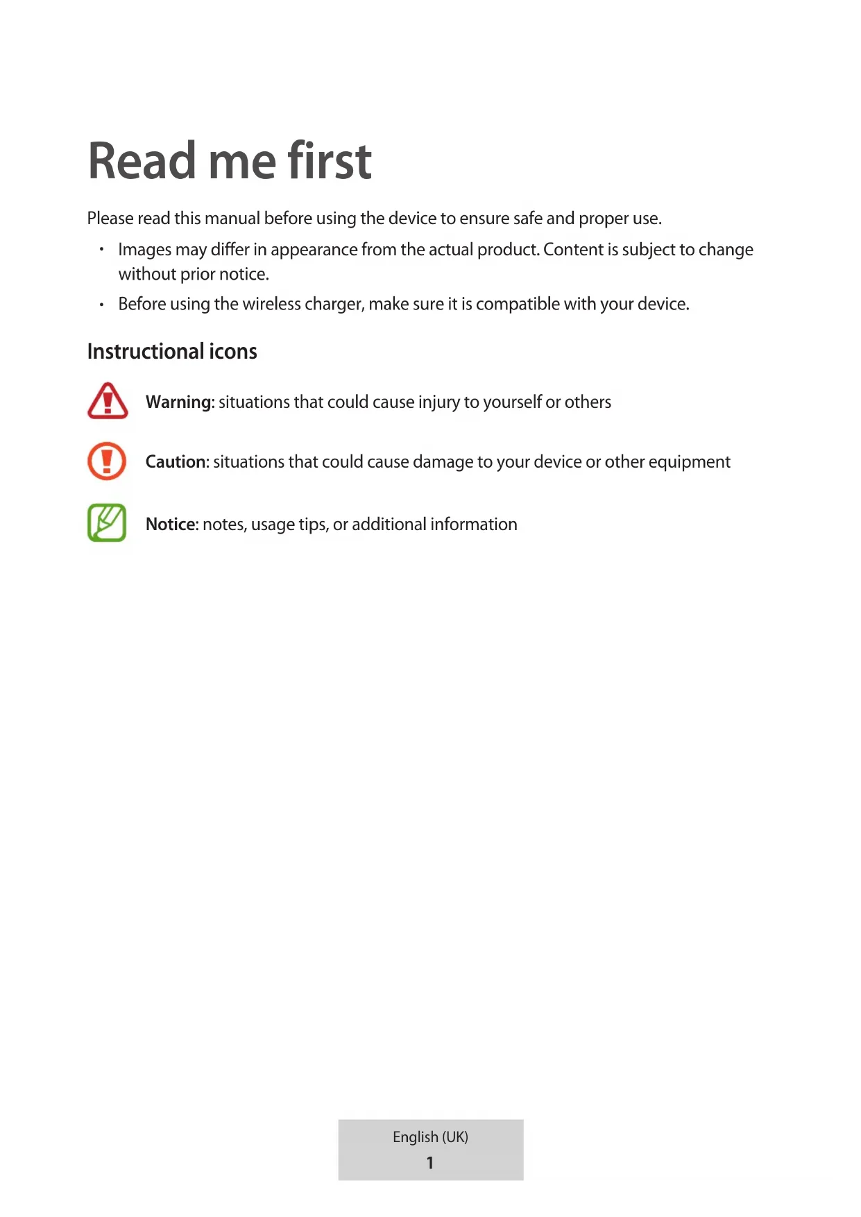 Français (Canada) Português (Brasil) 한국어1 English (UK) Read me first Please read this manual before using the device to ensure safe and proper use.