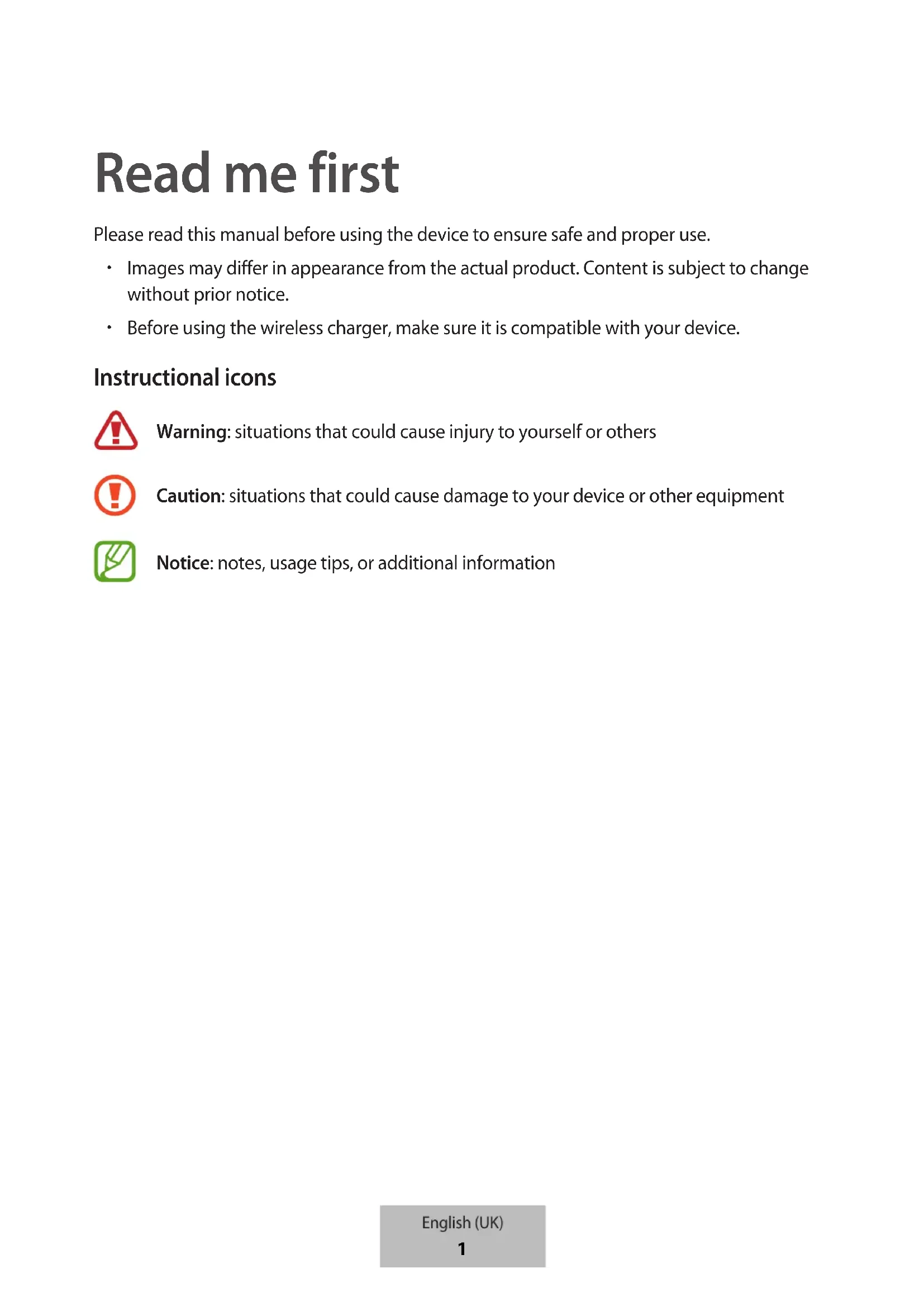 Caution: situations that could cause damage to your device or other equipment Notice: notes, usage tips, or additional information English (UK)