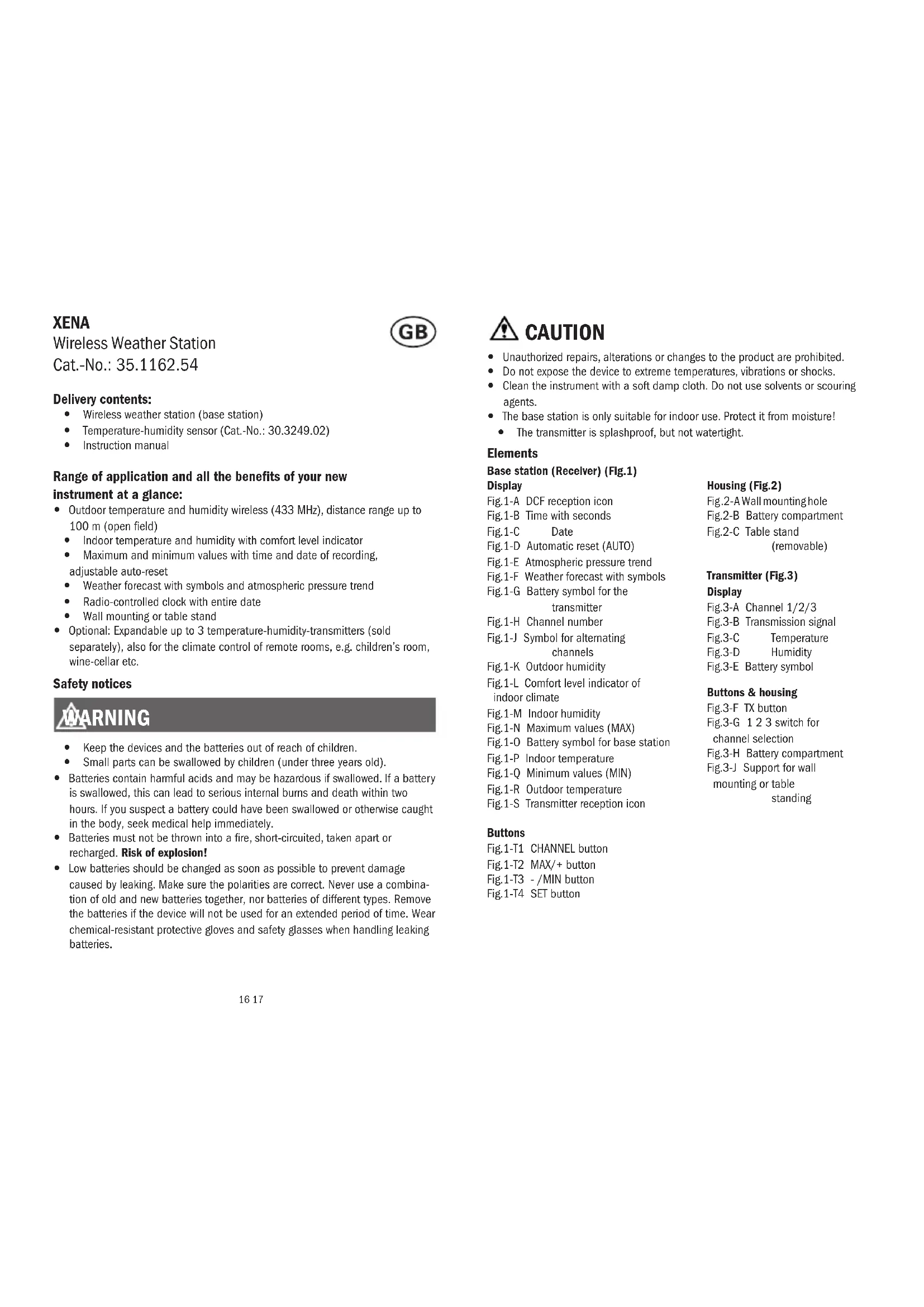 Download the instructions for your Weather Station in PDF format for free! Find your manual XENA 35.1162.54 - TFA and take your electronic device back in hand. On this page are published all the documents necessary for the use of your device. XENA 35.1162.54 by TFA.