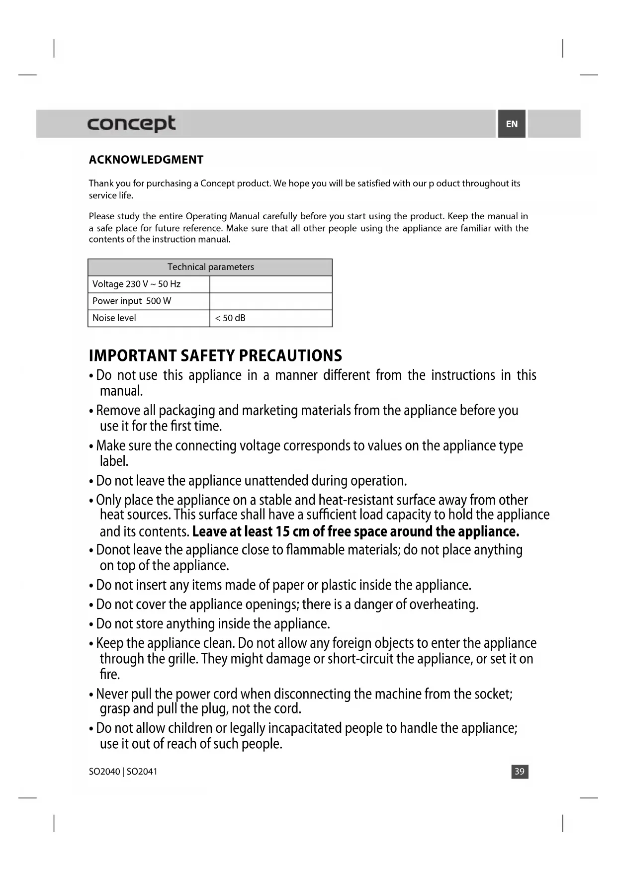 Thank you for purchasing a Concept product. We hope you will be satisfied with our product throughout its service life.
