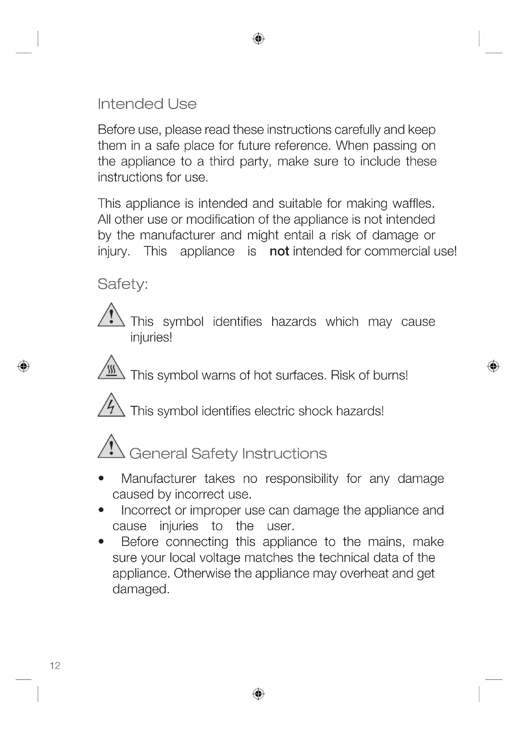 - Before connecting this appliance to the mains, make sure your local voltage matches the technical data of the appliance. Otherwise the appliance may overheat and get damaged.Instruction Manual ENGLISH