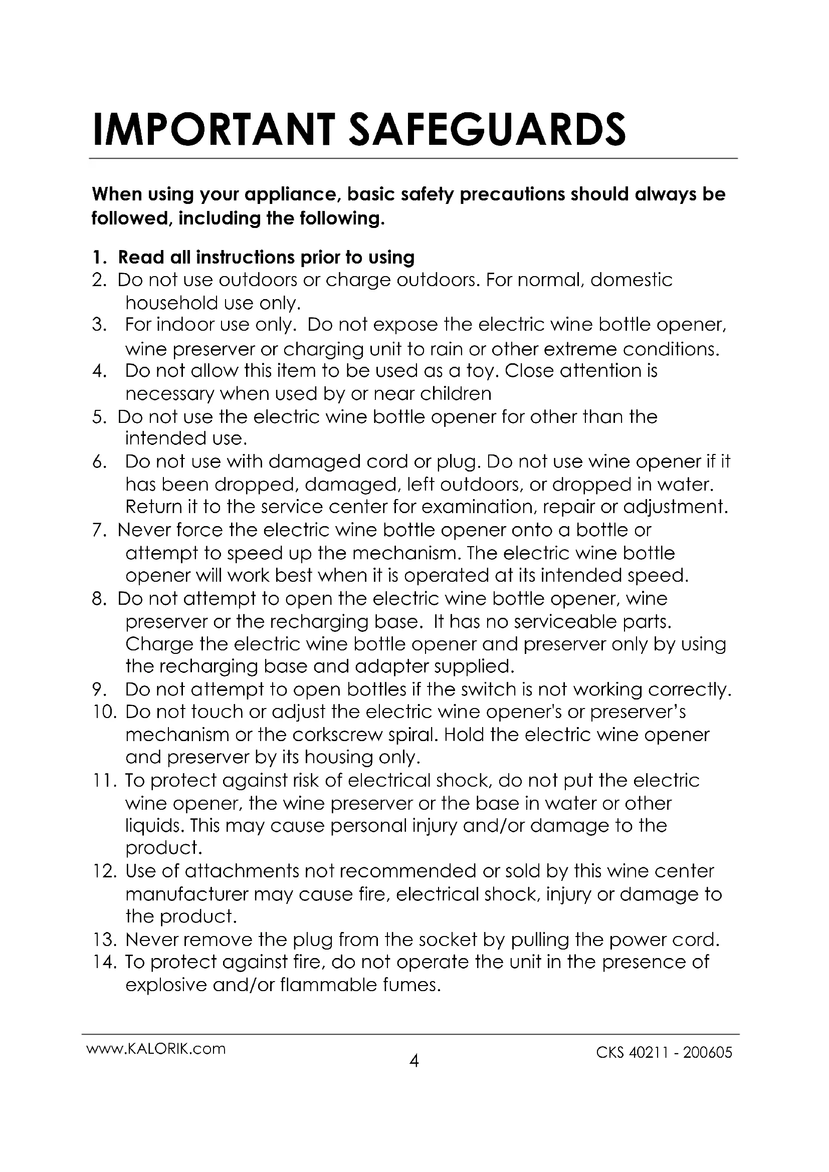 - For indoor use only. Do not expose the electric wine bottle opener, wine preserver or charging unit to rain or other extreme conditions.