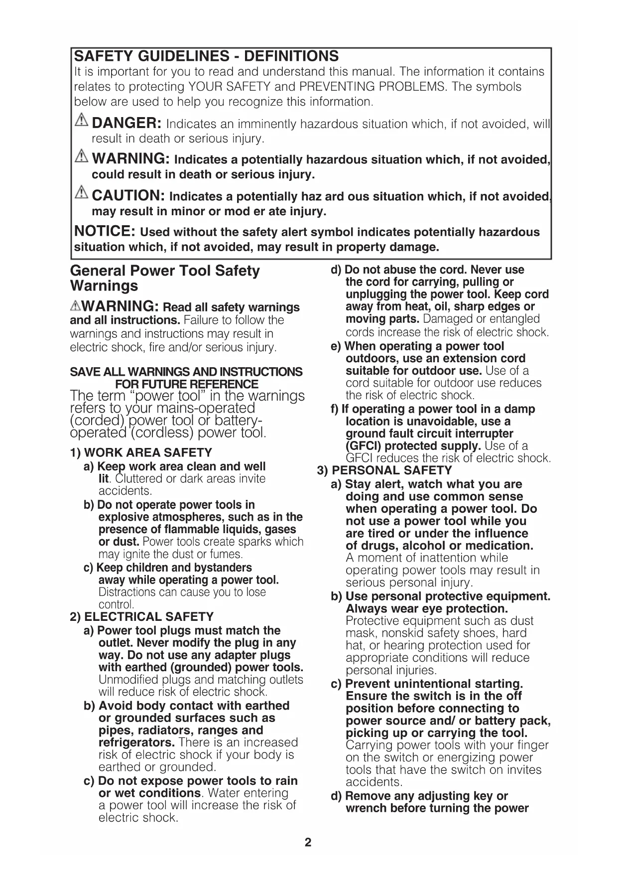 The term “power tool” in the warnings refers to your mains-operated (corded) power tool or battery- operated (cordless) power tool.