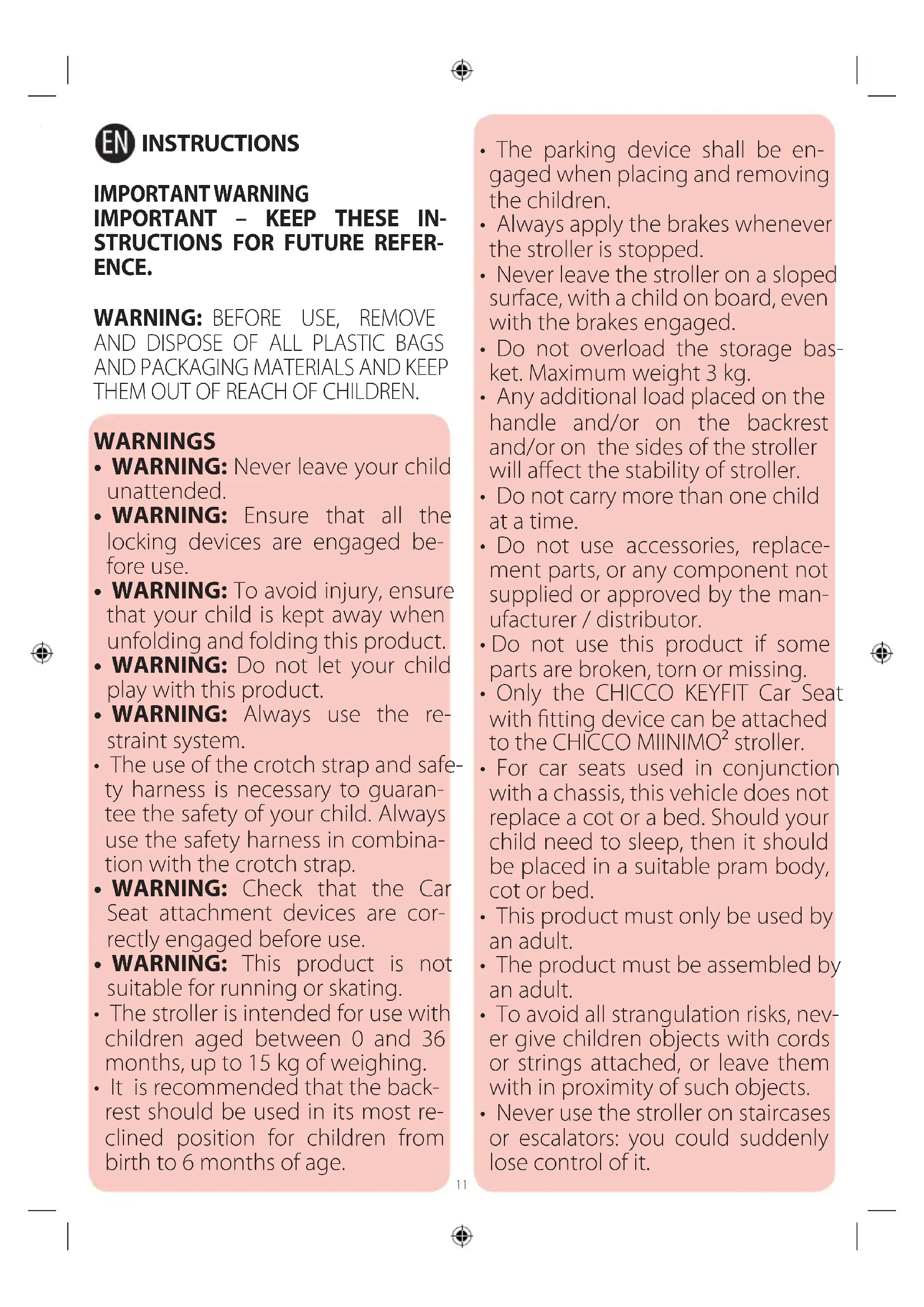 - Only the CHICCO KEYFIT Car Seat with tting device can be attached to the CHICCO MIINIMO² stroller.