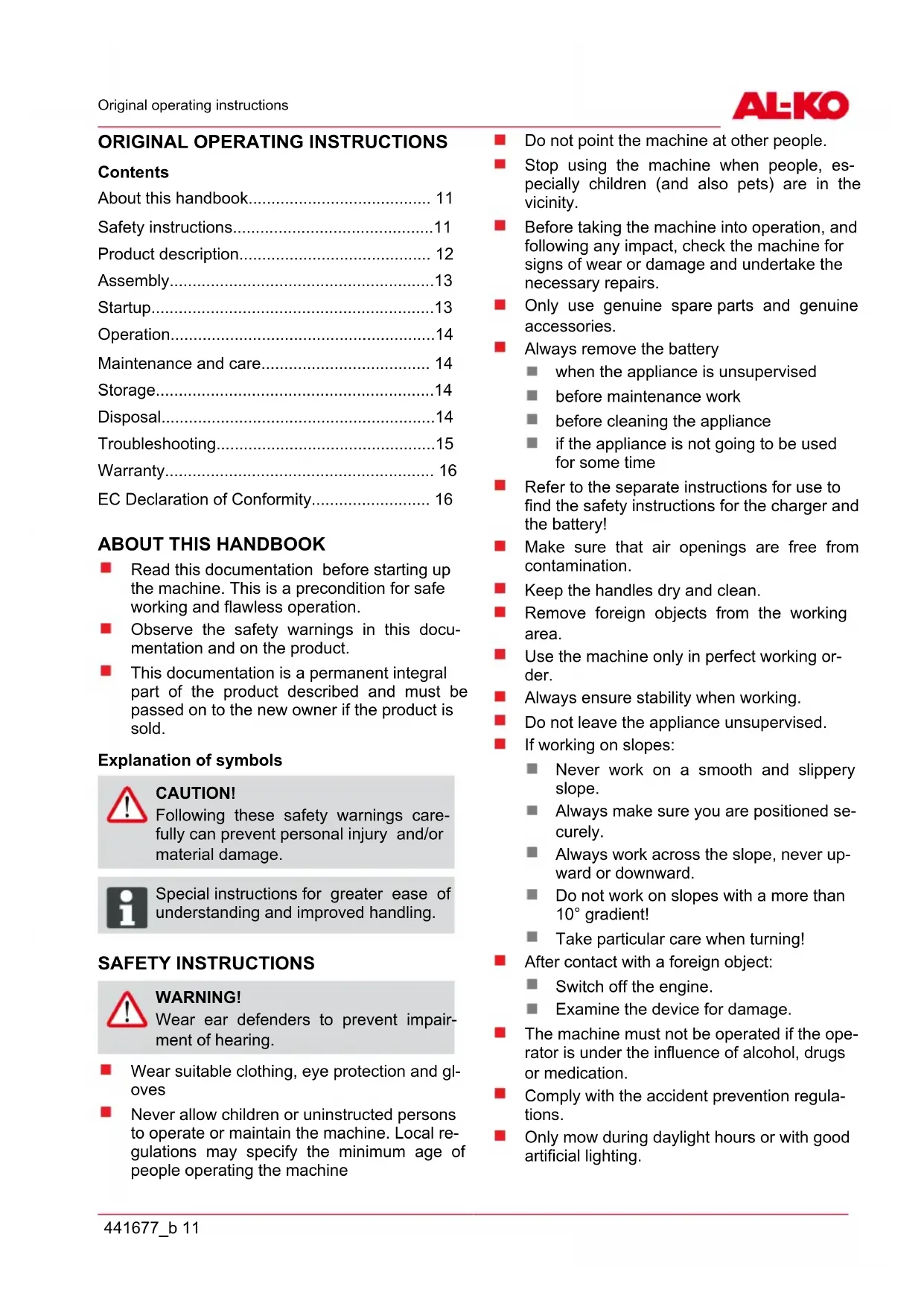 Find the device manual for free Energy Flex LB 36 Li AL-KO in PDF.