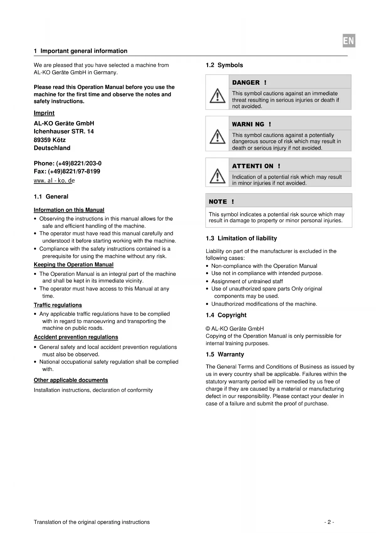 This documentation or excerpts therefrom may not be reproduced or disclosed to third parties without the express permission of the AL-KO KOBER GROUP.