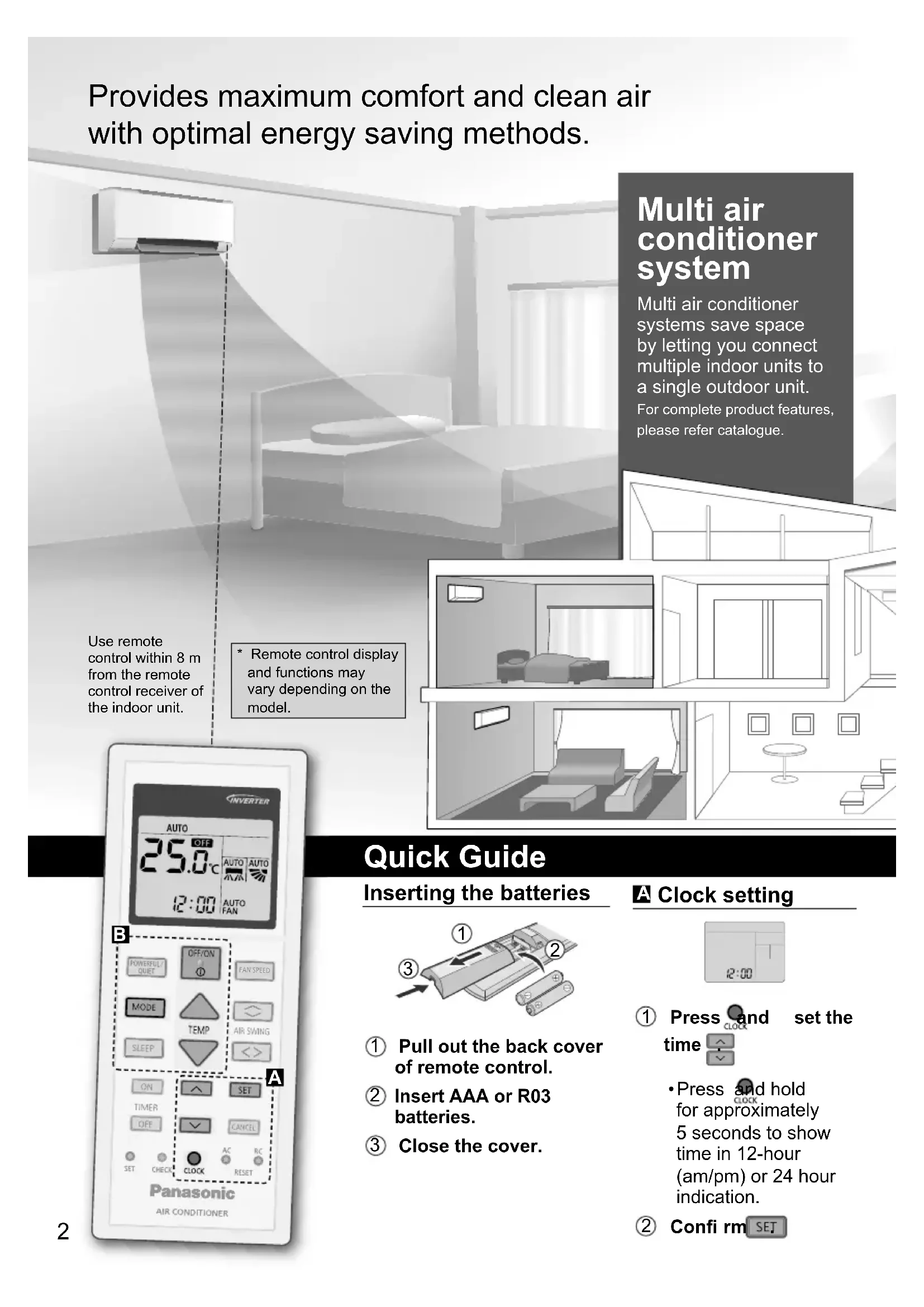 - Timer operation is based on the clock set in the remote control and repeats daily once set. For clock setting, please refer to Quick Guide. 2 sets of ON and OFF timers are available to turn ON or OFF the unit at different preset times. How to use To maximise comfort while sleeping