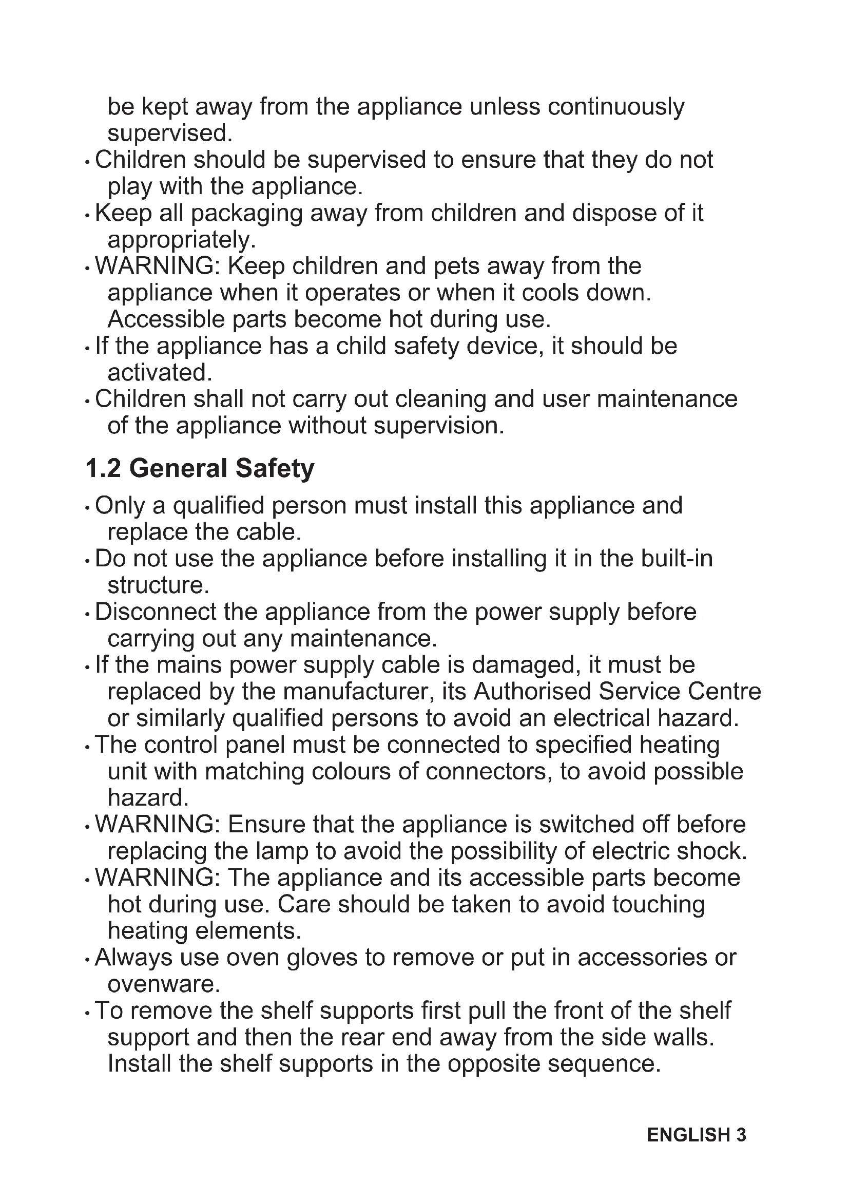 WARNING! Risk of injury, burns and electric shock or explosion. ENGLISH 5• This appliance is for household use only.