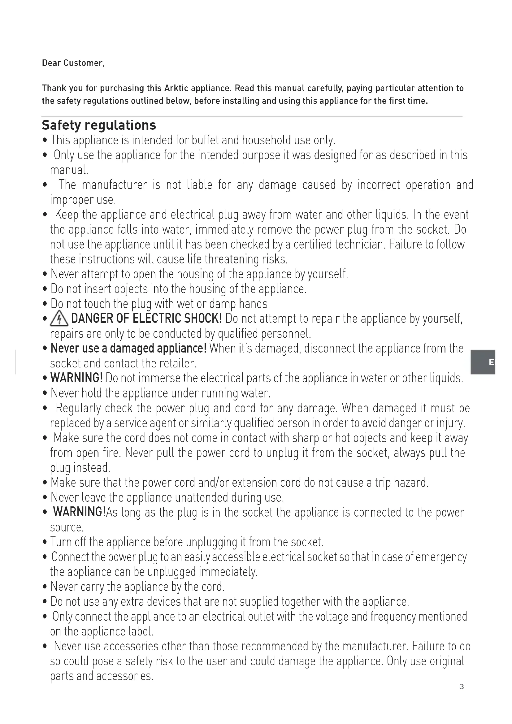 Thank you for purchasing this Arktic appliance. Read this manual carefully, paying particular attention to the safety regulations outlined below, before installing and using this appliance for the first time.