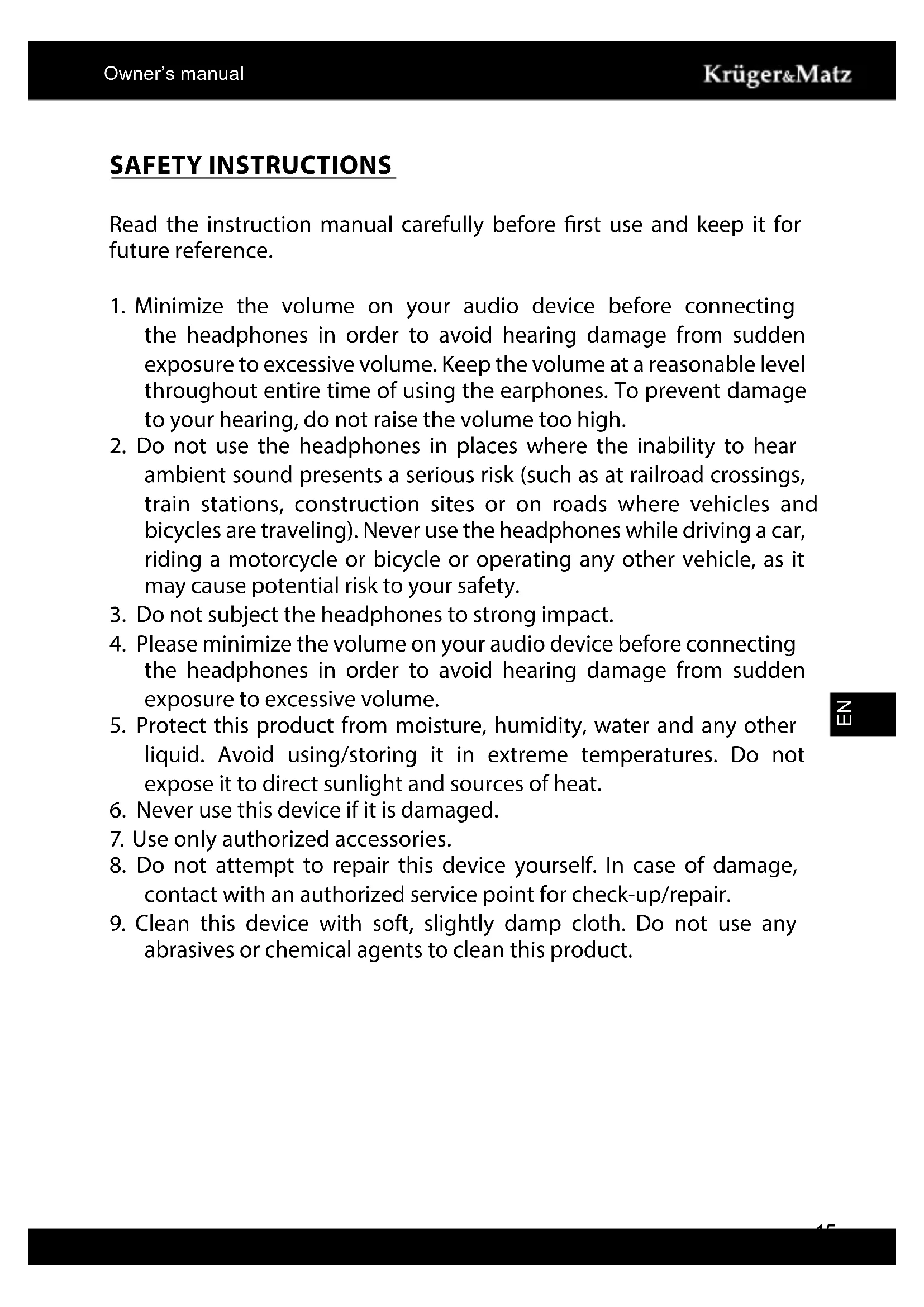 Download the instructions for your Earphones in PDF format for free! Find your manual KM0650G - Krüger&Matz and take your electronic device back in hand. On this page are published all the documents necessary for the use of your device. KM0650G by Krüger&Matz.