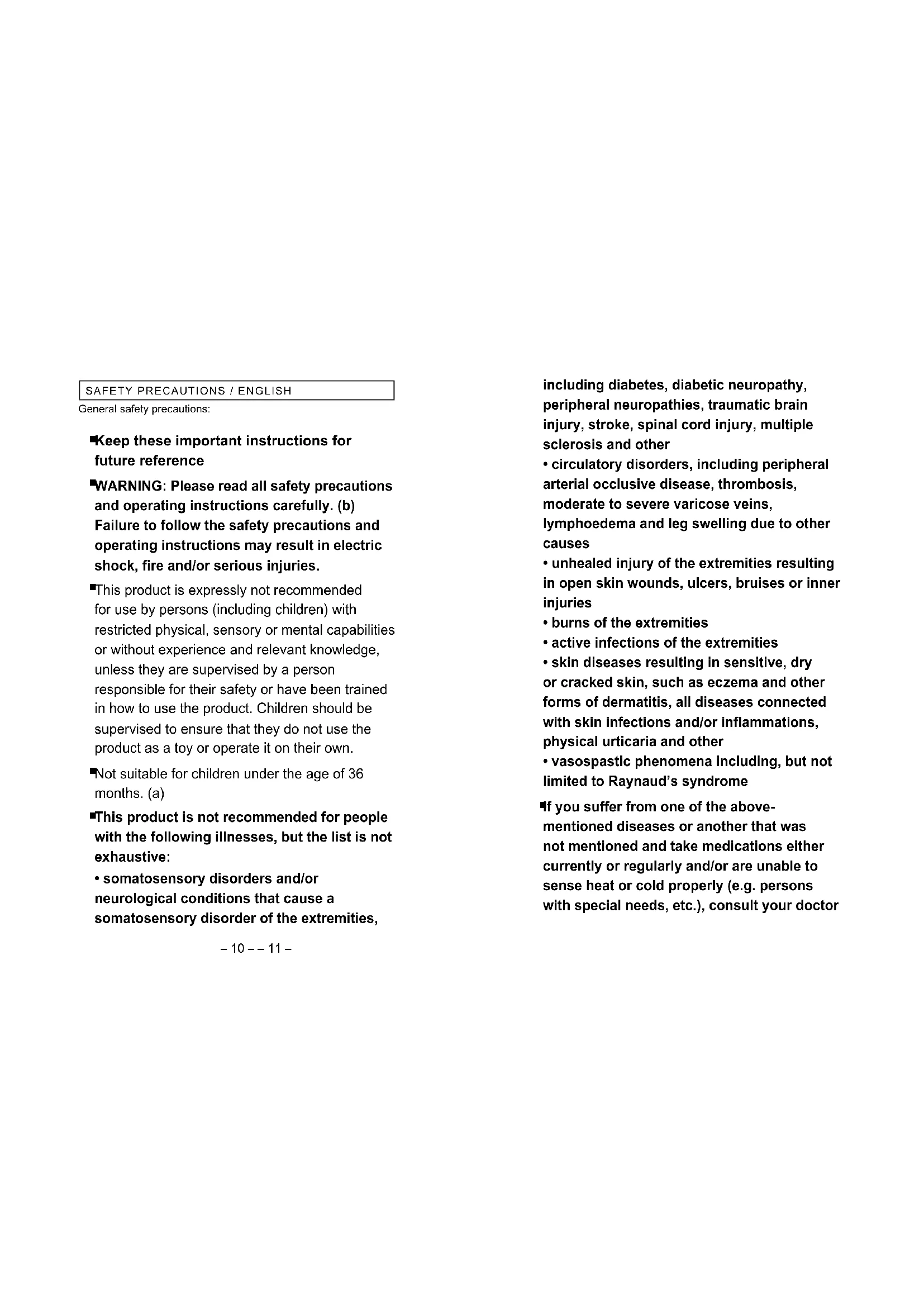 If you suer from one of the above- mentioned diseases or another that was not mentioned and take medications either currently or regularly and/or are unable to sense heat or cold properly (e.g. persons with special needs, etc.), consult your doctor