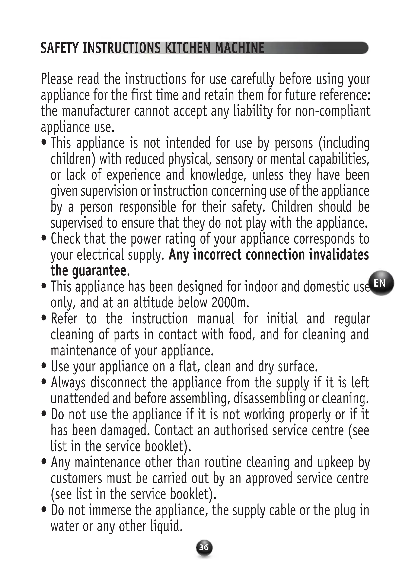 SAFETY INSTRUCTIONS KITCHEN MACHINE37