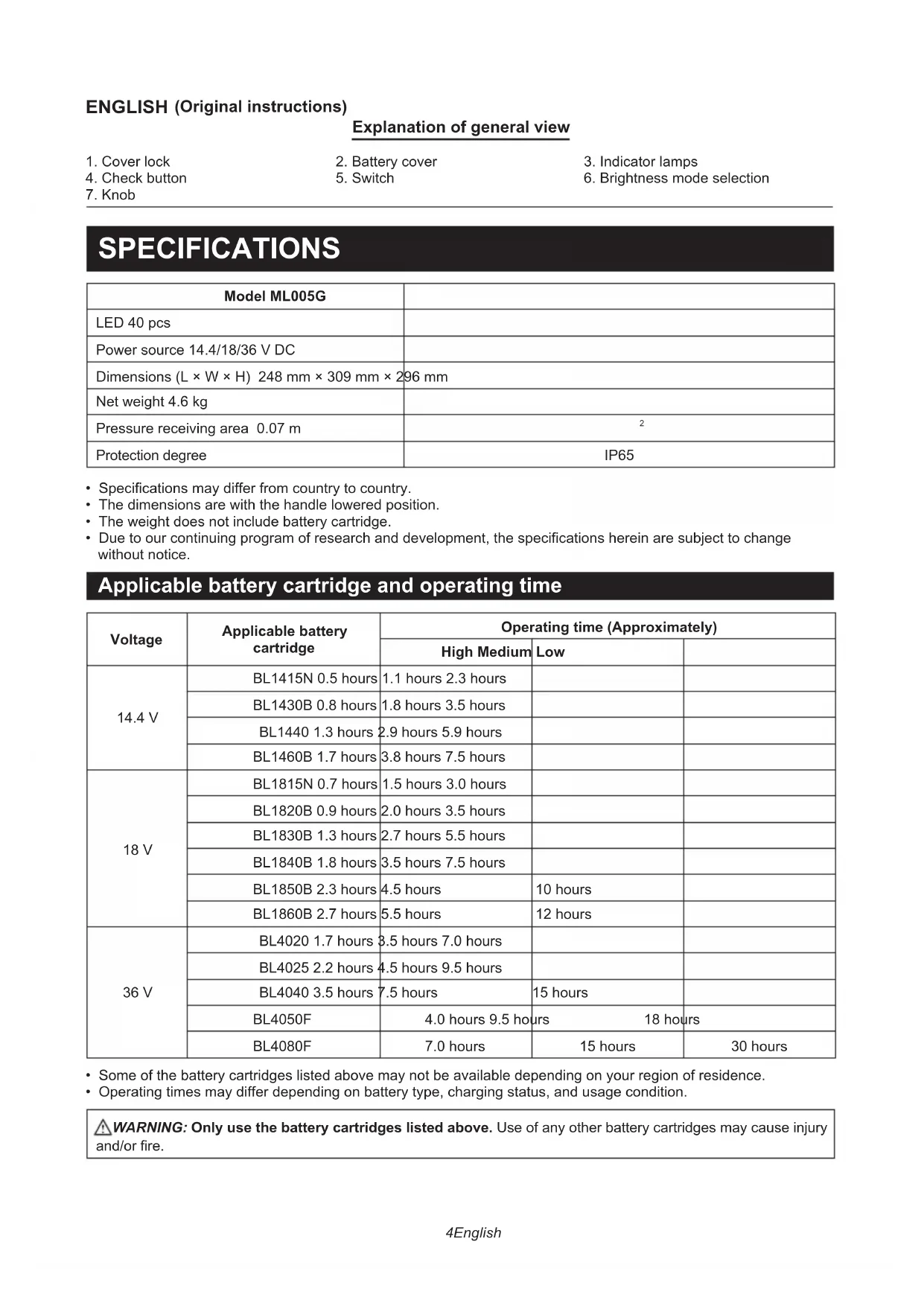 ML005G - Lighting MAKITA - Free user manual and instructions