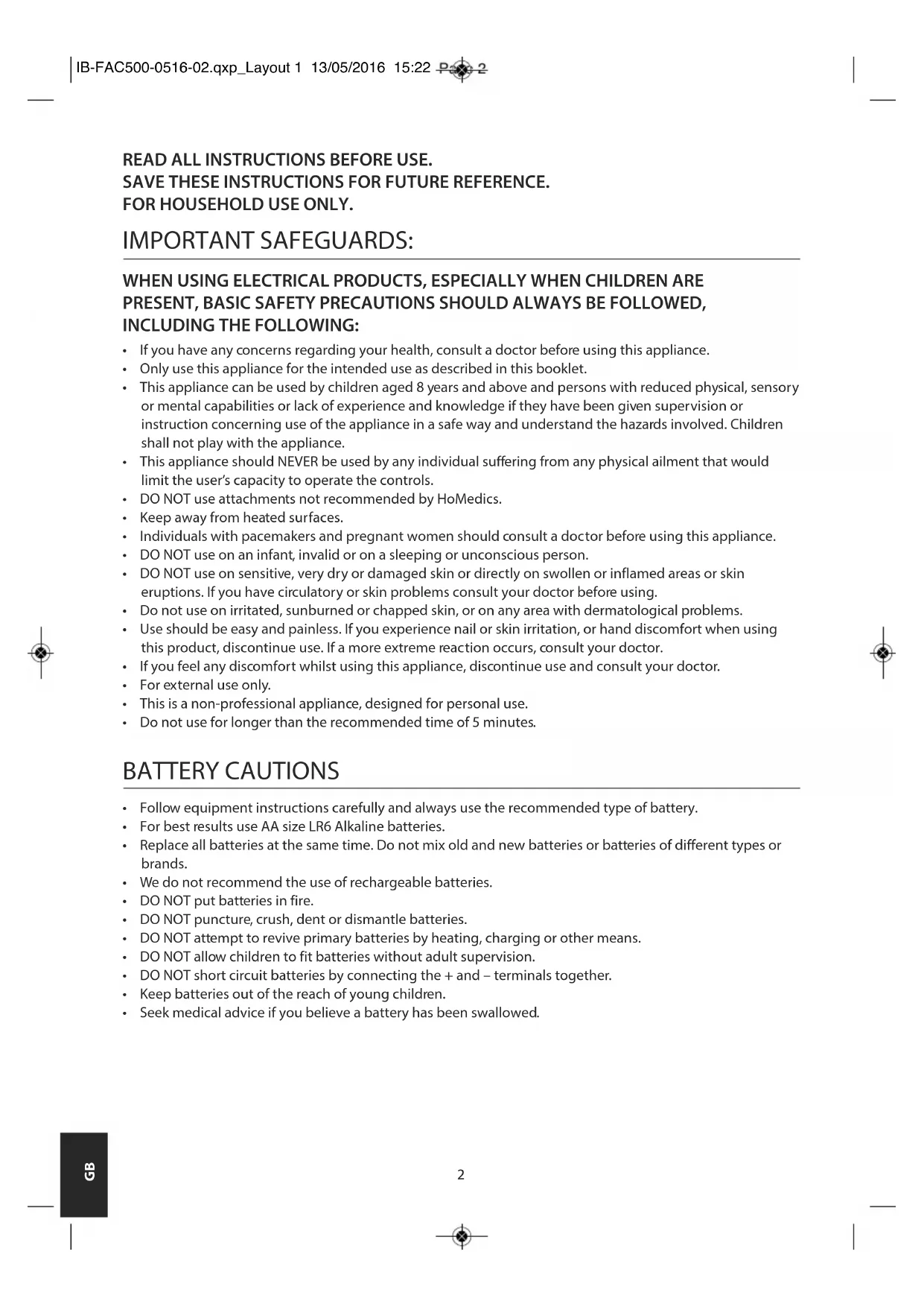 USER MANUAL FAC500RGAEU HOMEDICS