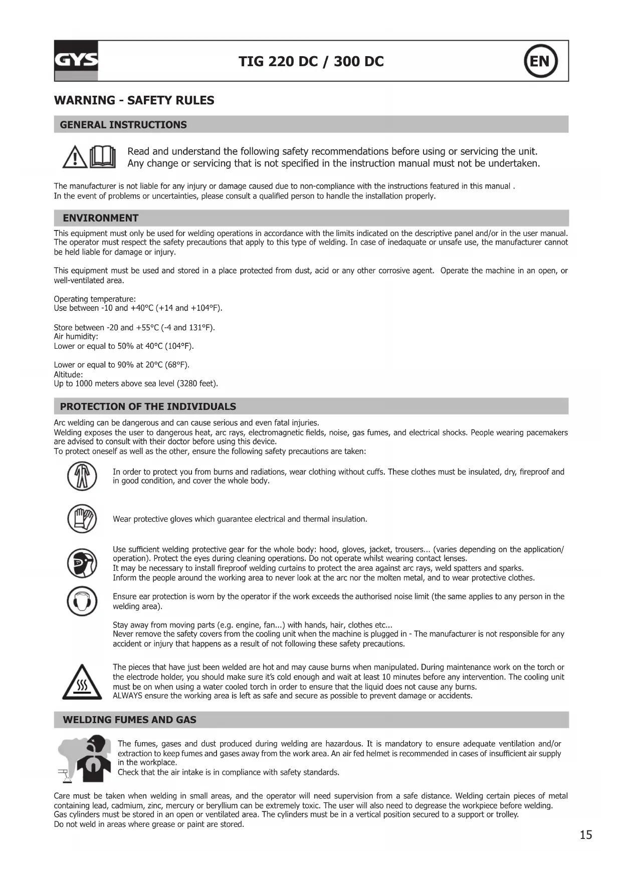 Download the instructions for your Welding machine in PDF format for free! Find your manual TIG 220 DC HF FV - GYS and take your electronic device back in hand. On this page are published all the documents necessary for the use of your device. TIG 220 DC HF FV by GYS.