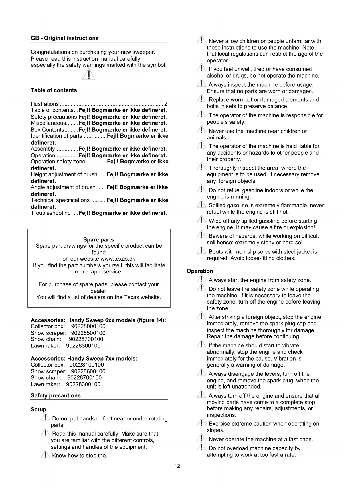 GB - Original instructions Congratulations on purchasing your new sweeper. Please read this instruction manual carefully, especially the safety warnings marked with the symbol: