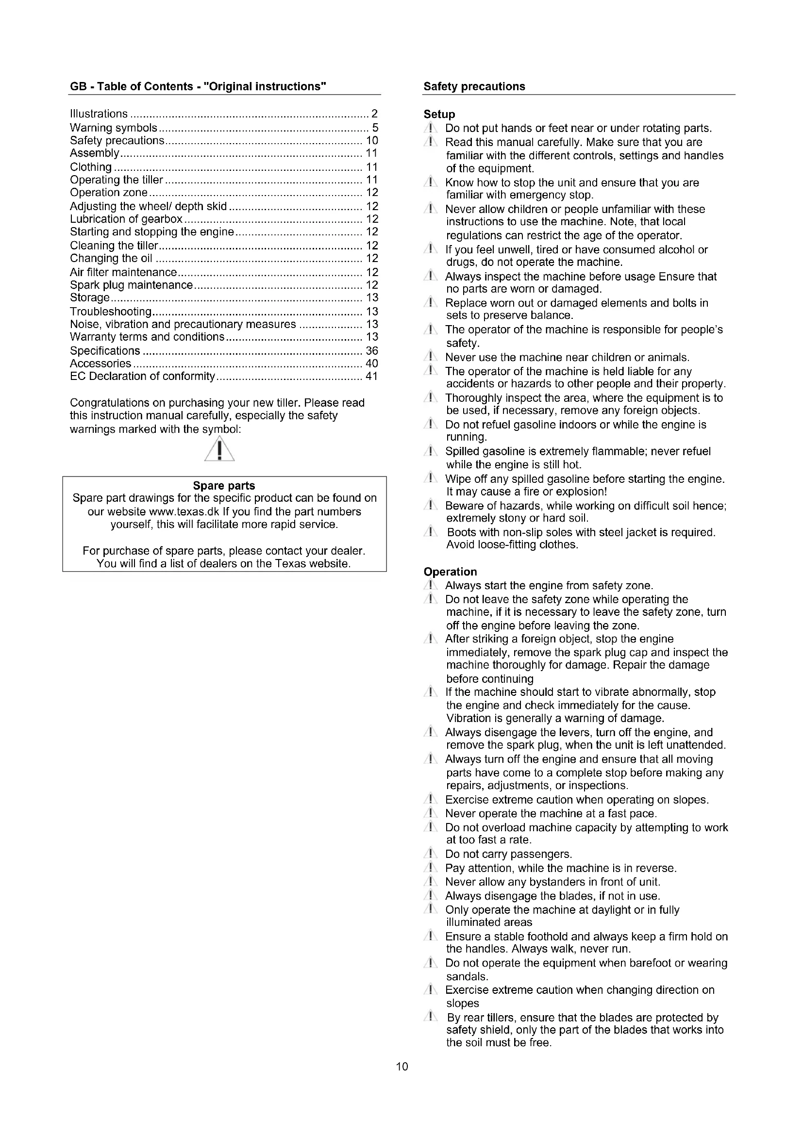 Lilli 340TG - Rototiller Texas - Free user manual and instructions