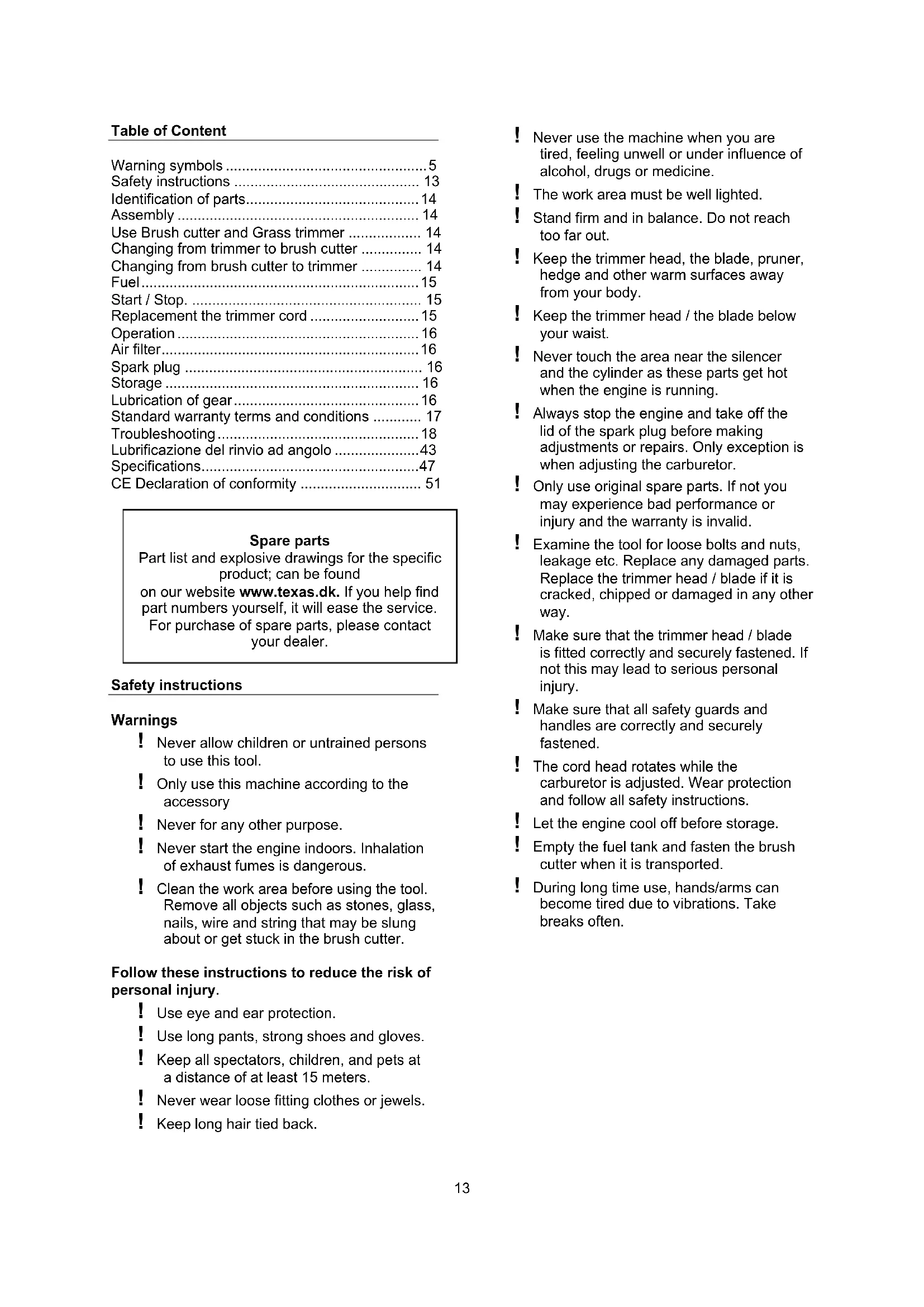 BCU33S - Grass trimmer Texas - Free user manual and instructions