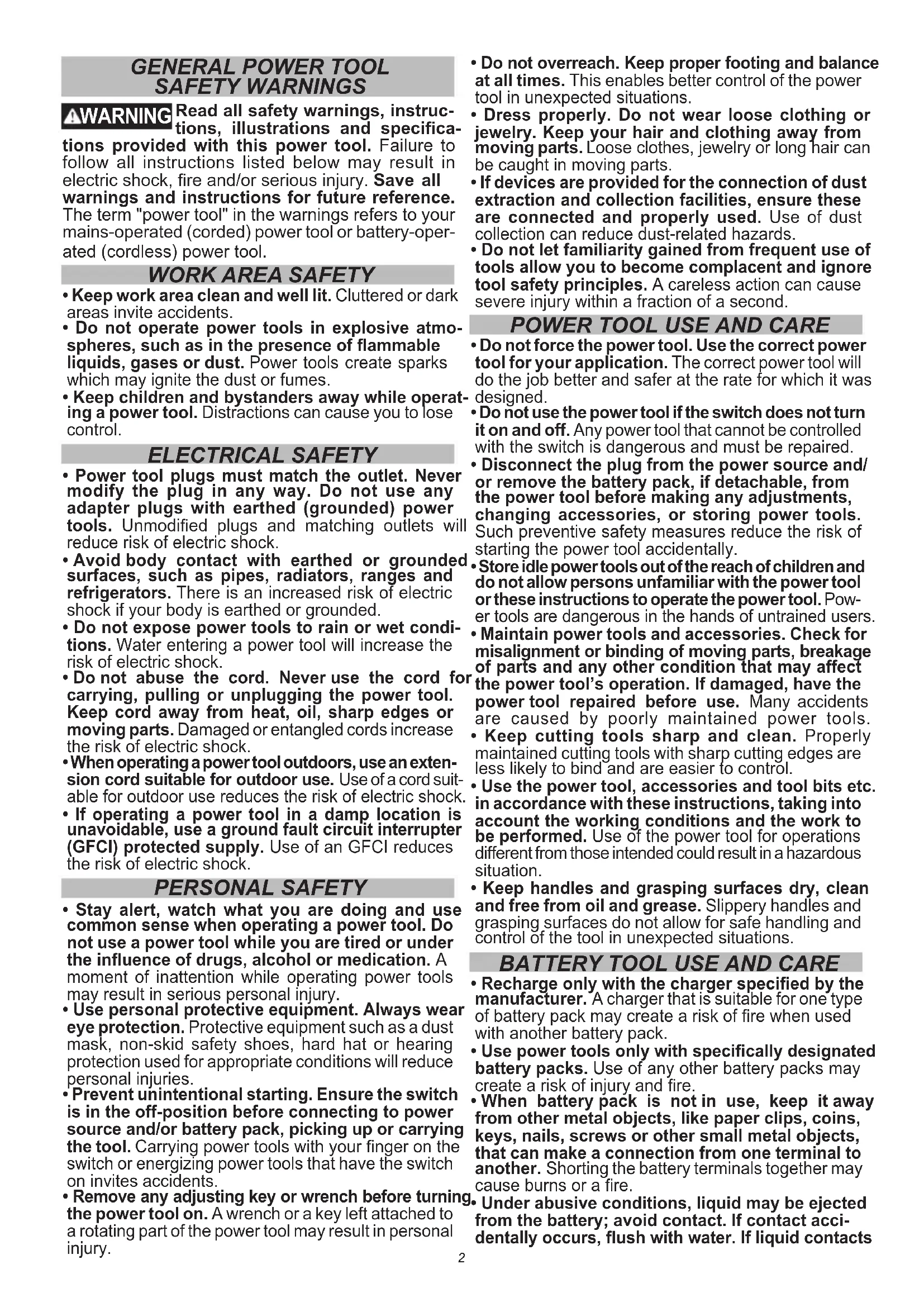 BATTERY TOOL USE AND CARE