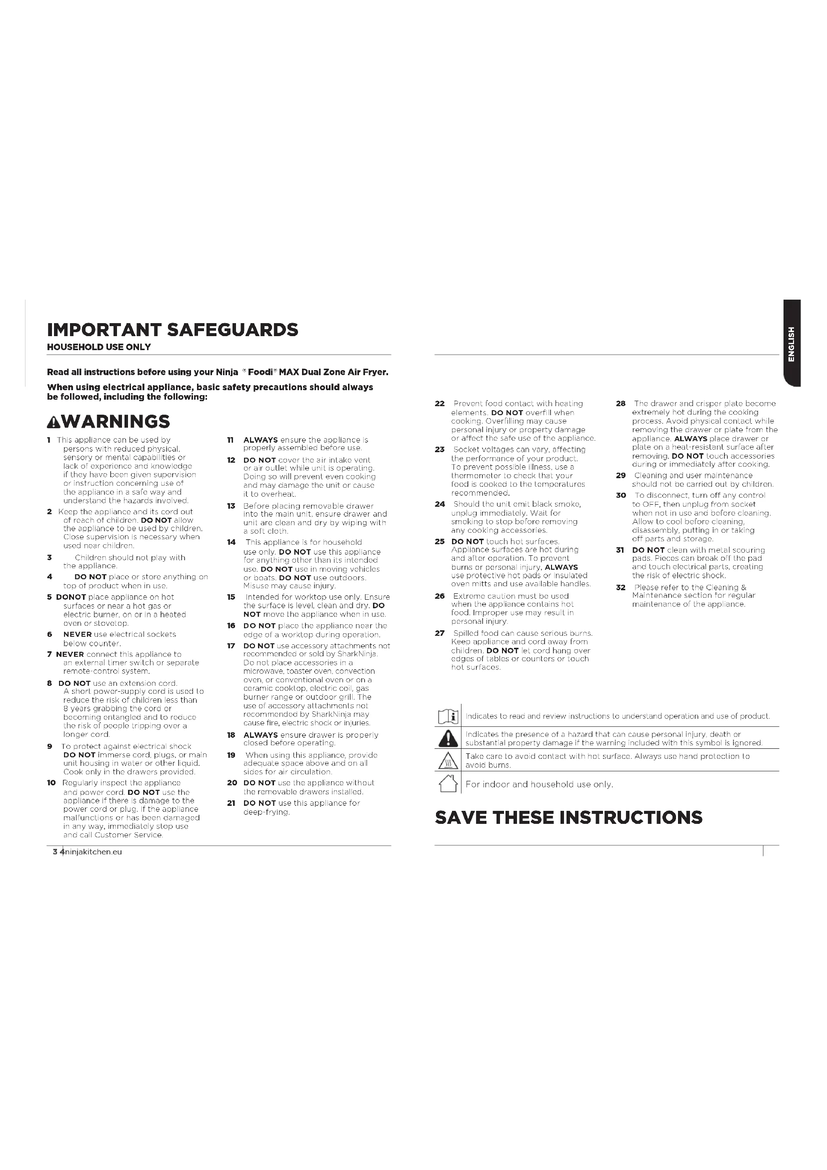 Read all instructions before using your Ninja "Foodi" MAX Dual Zone Air Fryer. When using electrical appliance, basic safety precautions should always be followed, including the following: