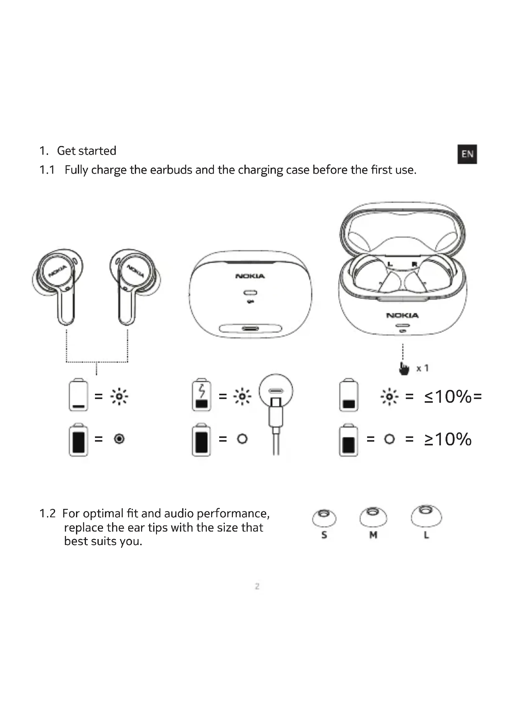 replace the ear tips with the size that best suits you. = ≤10%=