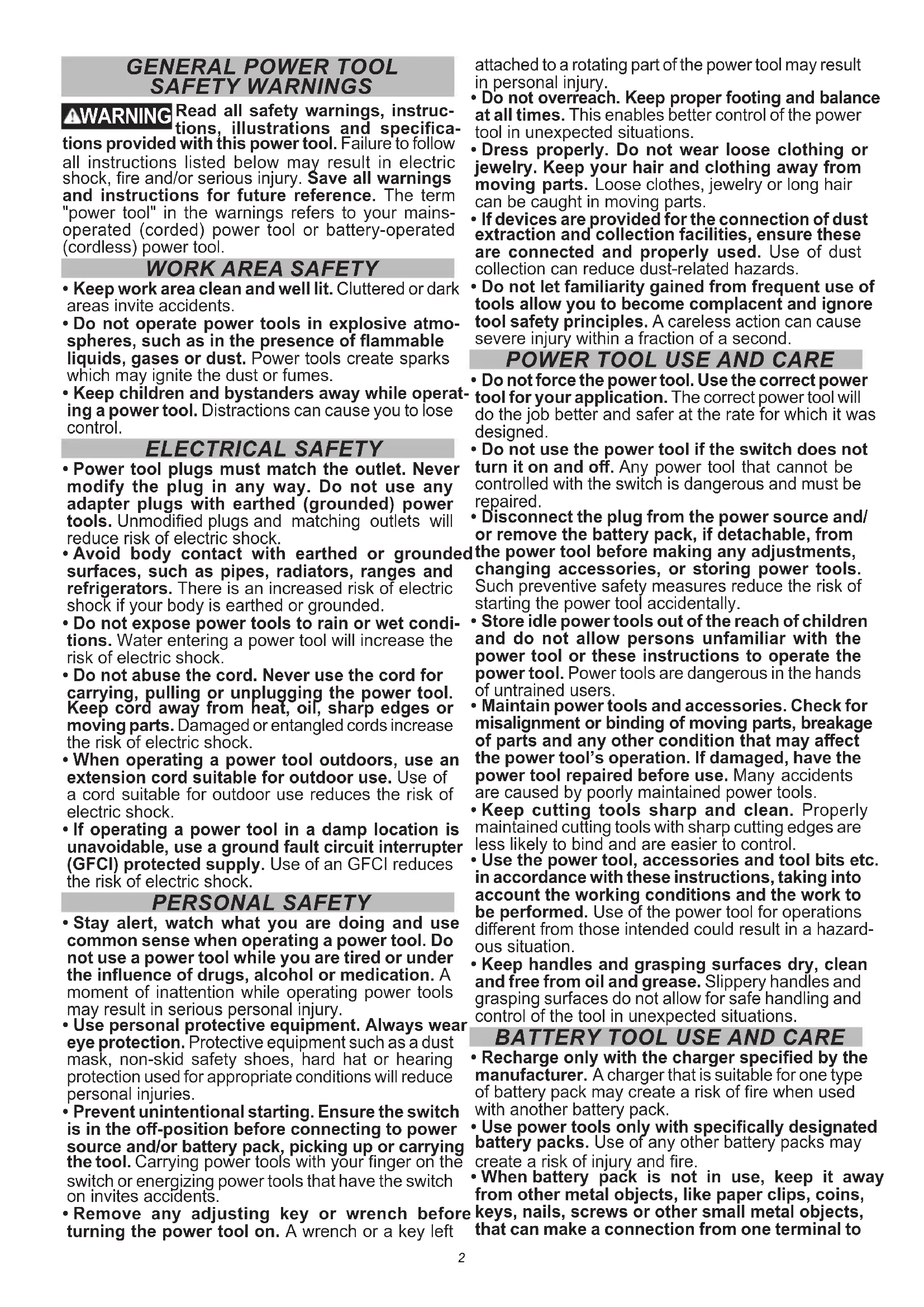- Do not force the power tool. Use the correct power tool for your application. The correct power tool will do the job better and safer at the rate for which it was designed.