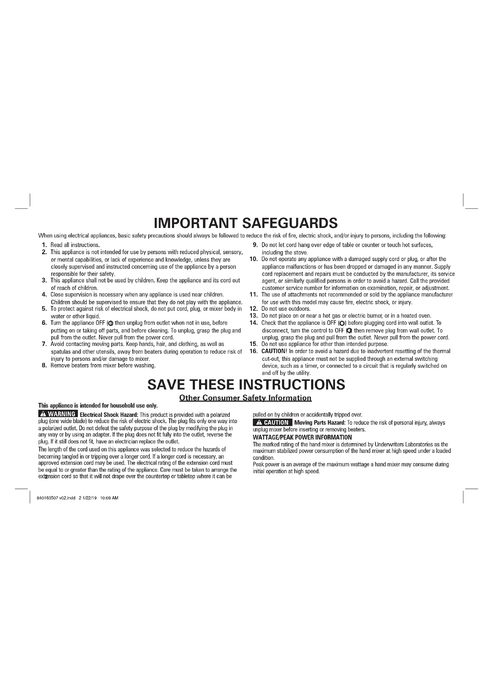 cut-out, this appliance must not be supplied through an external switching device, such as a timer, or connected to a circuit that is regularly switched on and off by the utility. 840163507 v02.indd 2 1/22/19 10:09 AM3 Parts and Features How to Use Your Hand/Stand Mixer To order parts: US: 1.800.851.8900 www.hamiltonbeach.com Canada: 1.800.267.2826 Mexico: 01 800 71 16 100 Before first use: Wash attachments in hot, soapy water; rinse and dry.